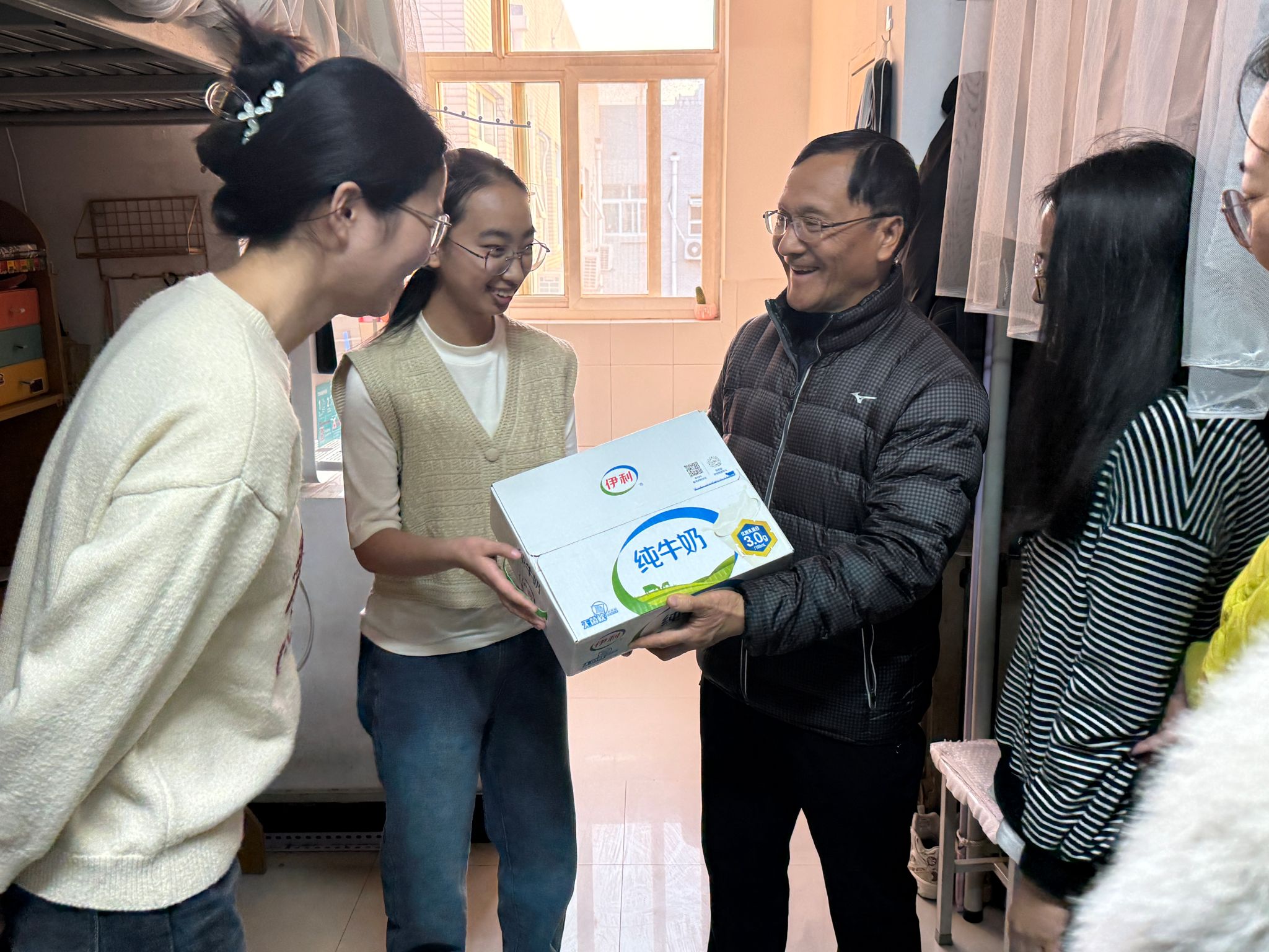 寒冬融暖意,温情润心田。临近2025年全国硕士研究生招生考试,为缓解考研学生的备考压力,坚定备考信心,传递关爱温暖。12月17日经济与金融学院副院长杨健全、学生工作负责人廉宇婷、辅导员杨静怡、张进深入考研学生宿舍,送去温暖与关怀,为同学们加油鼓劲。
