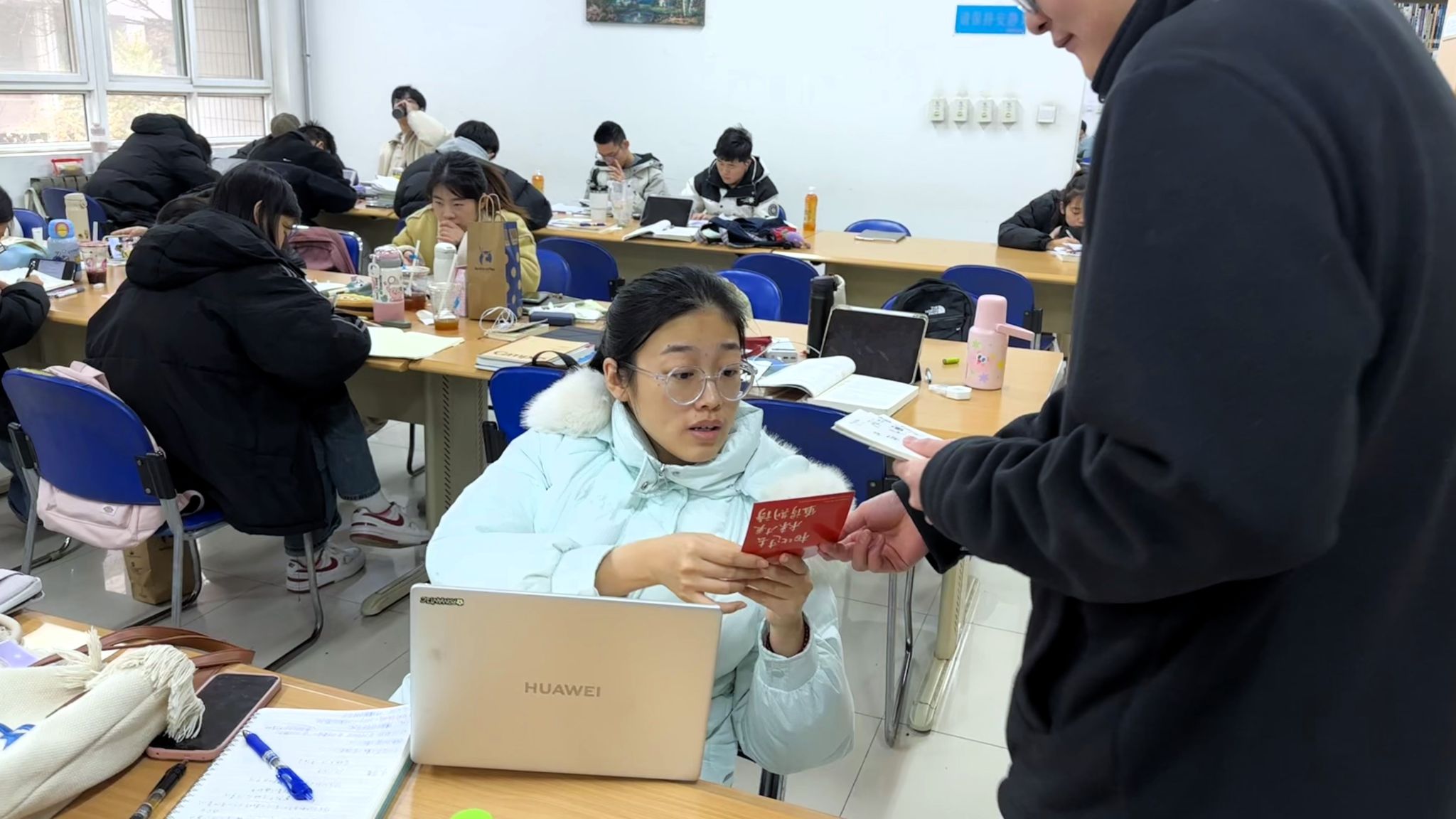 随着2025年全国硕士研究生招生考试日益临近,万千学子进入了紧张的备考阶段。12月18日,机械工程学院学生会志愿者为考研学子送上了一份寓意深远的礼物——考研明信片,为他们加油鼓劲,传递学校关爱。