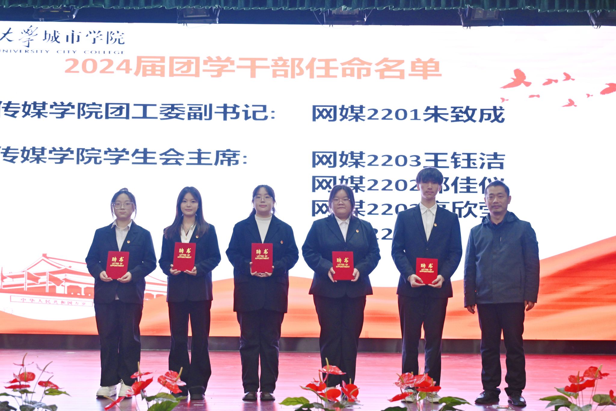 12月18日,传媒学院在教二报告厅举办团工委学生会换届大会。院长助理刘敏涛、团工委书记陈欣、辅导员杨月、任瑾参加本次活动,活动由2024级学生周林欣主持。