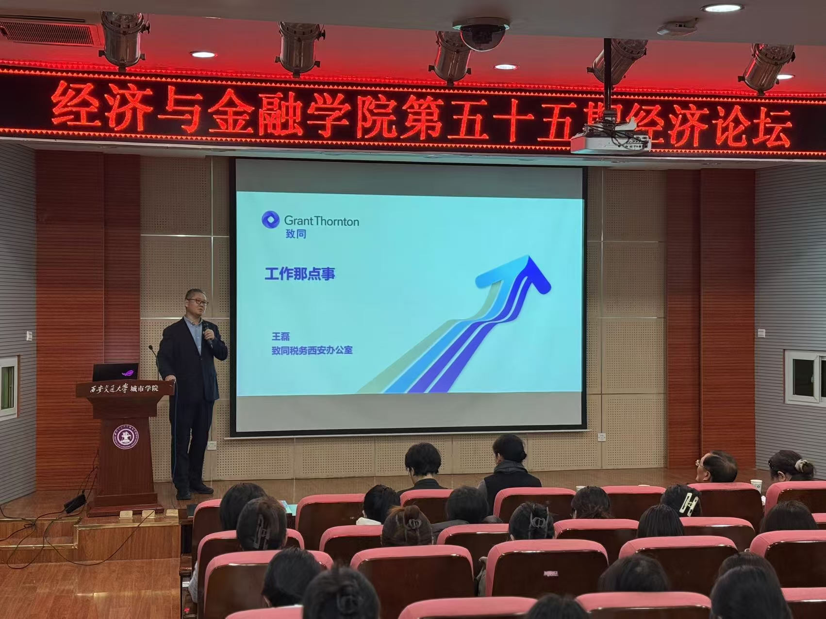 为进一步推动校企合作,深化产教融合,充分发挥校企双方优势,助力人才培养质量提升,经济与金融学院于12月26日在F100召开第五十五期经济论坛,莅临本次活动的嘉宾有致同税务师事务所合伙人朱玉萍、致同税务师事务所合伙人李萍、致同税务师事务所高级经理王磊、经济与金融学院院长张文科、副院长杨健全、副院长白丹以及经济与金融学院的教师及辅导员,活动由周学亮主持。
