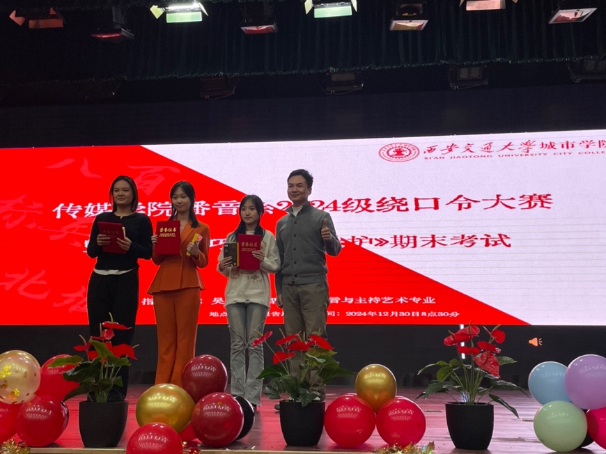 经过激烈角逐,最终评选出一等奖3名,二等奖5名,三等奖8名。其中,播主2401班赵宇田、2401班黄怡华和2402班高旭敏三位同学凭借扎实的专业功底和自信的舞台表现荣获一等奖。