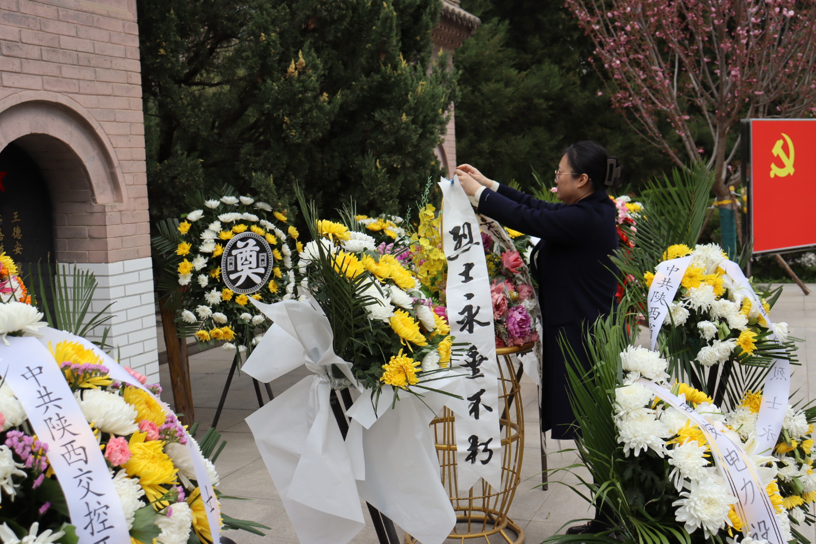 4月2日下午,经济与管理学院学生第三党支部前往西安烈士陵园开展清明祭扫活动。苍松翠柏映忠魂,浩气长存铸丰碑。在庄严肃穆的烈士纪念碑前,全体党员整齐列队,脱帽肃立,向为国家和人民英勇献身的烈士们默哀,大家神情庄重,在静默中寄托对先烈们的无限哀思。随后,全体党员面向党旗,高举右拳,重温入党誓词,一句句铿锵有力的誓言,表达了党员们对党的忠诚和为党的事业奋斗终身的决心。仪式完成之后,支部党员们有序步入墓区,向长眠于此的革命烈士们献上鲜花,表达对先烈们的敬意和缅怀。