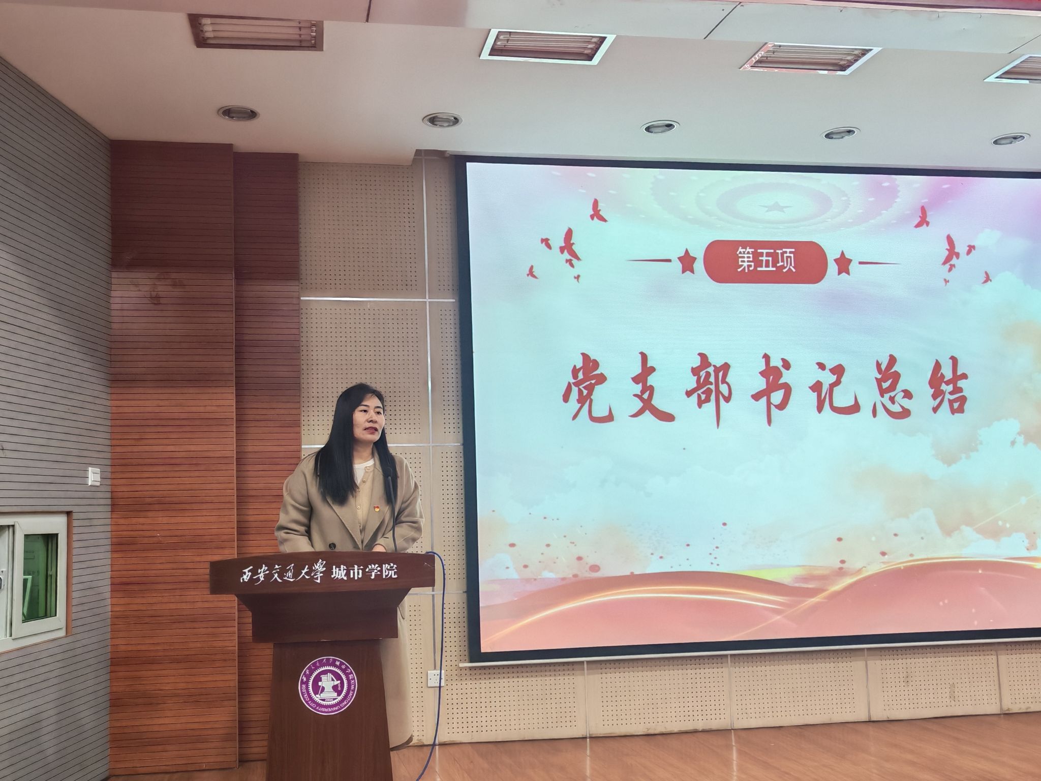 活动伊始,全体人员一同观看了纪录片《百年求索》。影片以详实的史料、生动的画面,全面展现了抗日战争的艰辛历程和胜利经过,使大家对抗战历史有了更为深刻地认识。观影结束后,团支书代表饱含深情地朗诵《铭记历史,强国有我——纪念抗日战争胜利80周年》,激昂的诗句将大家带回那段波澜壮阔的峥嵘岁月,表达了对革命先辈的无限敬仰和为实现强国目标不懈奋斗的坚定决心。