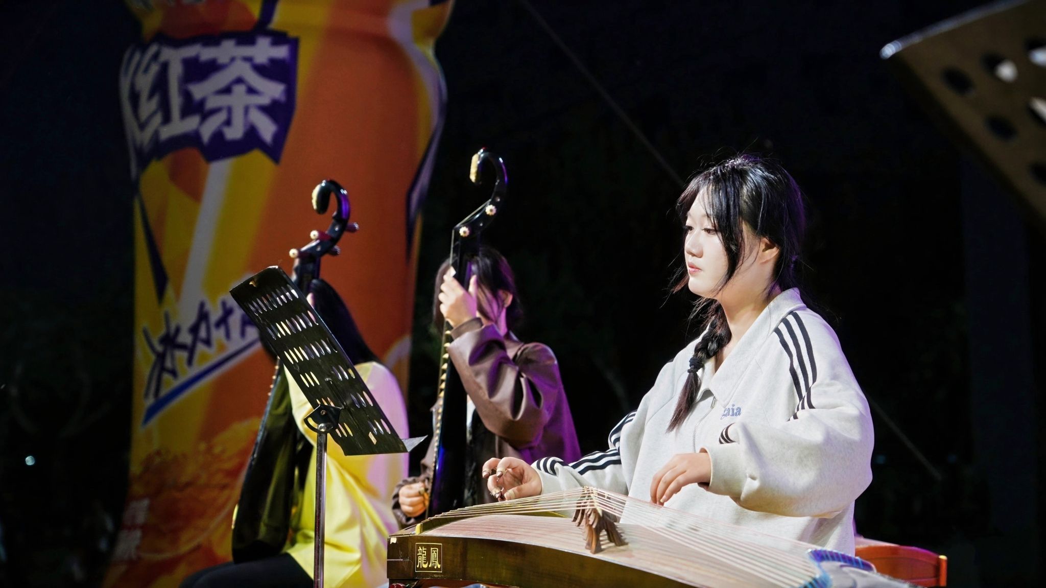 音乐节主舞台搭建于绿意盎然的草坪中央,伴随着春日暖阳,民谣、摇滚、古典、说唱等不同风格的歌唱表演轮番登场。校舞蹈团的一支《Whiplash》街舞为晚会拉开序幕。除音乐表演外,本届草坪音乐节还设置了“音乐市集”“乐器体验”“草坪K歌”“有奖问答”等互动环节,让观众在欣赏比赛的同时,亲身参与音乐创作与表演。学院舞蹈团的《Restless Party》、街舞社的《Lucifer》炫酷街舞表演,以灵动舞步和精湛技巧,展现出青春的活力与不羁将现场气氛推向一波又一波的高潮,民族管弦乐队等学生社团也带来了精彩助演,展现了校园文化的多元魅力。