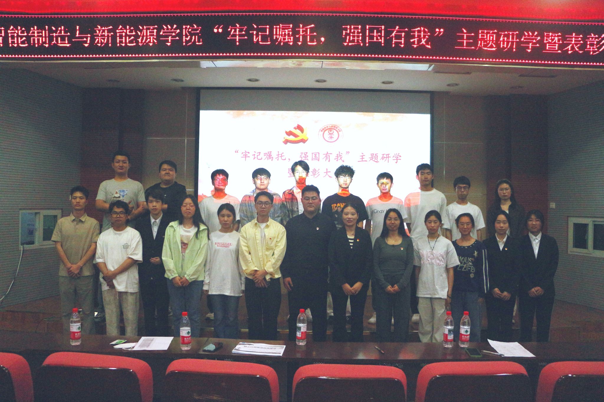 为了筑牢大学生理想信念根基,4月15日,智能制造与新能源学院学生党支部于F100会议室开展“牢记嘱托,强国有我”主题研学暨表彰大会。大会将理论与实践相结合,以榜样力量激发学生对国家发展战略的深刻理解。学生党支部书记王丽丽、组织委员史晓薇、宣传委员童治杰、辅导员王令、全体党员及42期入党积极分子出席本次会议。本次大会由朱颜汐同学主持。