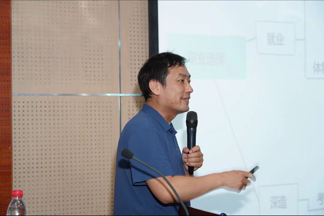 杜晓磊深入剖析了当前就业与考研的形势。他表示,当下就业市场竞争异常激烈,不同行业对人才的需求呈现出多元化的特点。杜晓磊强调,自我认知是做出正确选择的关键。他引导同学们从多个维度进行自我分析,深入了解自己的优势、劣势、兴趣和职业倾向。在备战指导环节,杜晓磊针对不同选择的同学,提供了实用的方法和策略。对于选择就业的同学,他详细讲解了有效的求职技巧,如制作精美的简历、在面试中展现自信与专业等,并分享了通过实习积累工作经验、提高就业竞争力的方法。对于选择考研的同学,他则详细介绍了考研复习规划,包括制定合理的学习计划、选择适合的参考资料以及调整备考心态等方面的建议。