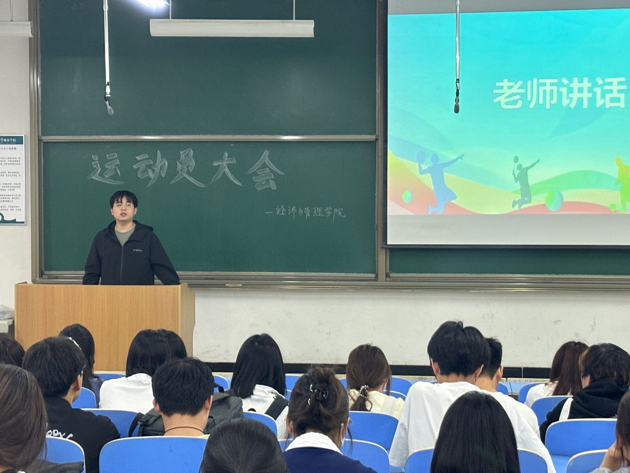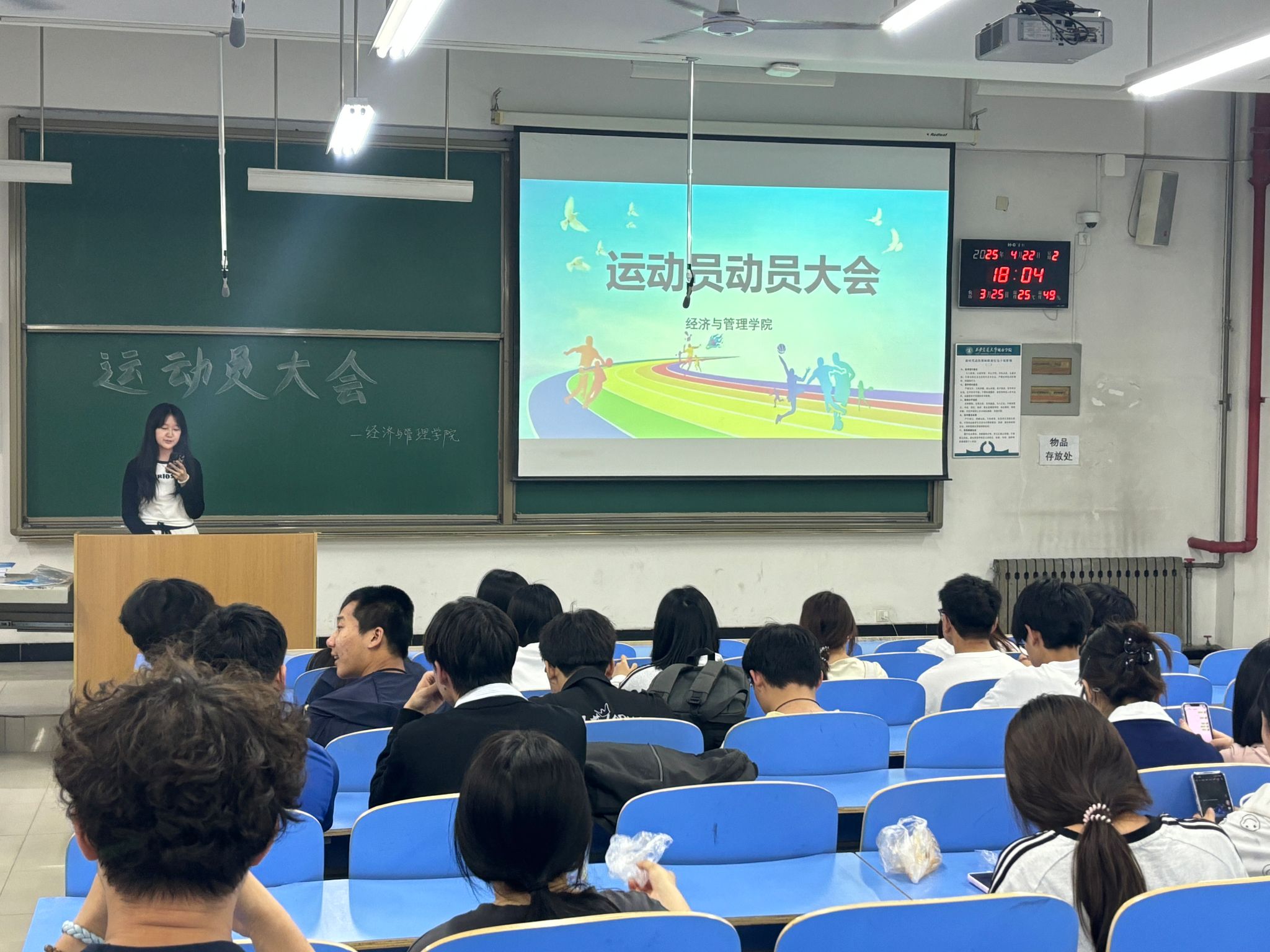 4月22日晚,经济与管理学院在教二103召开运动员动员大会。团工委书记柯智航、学院全体运动员参加本次动员会,会议由彭梓媛同学主持。