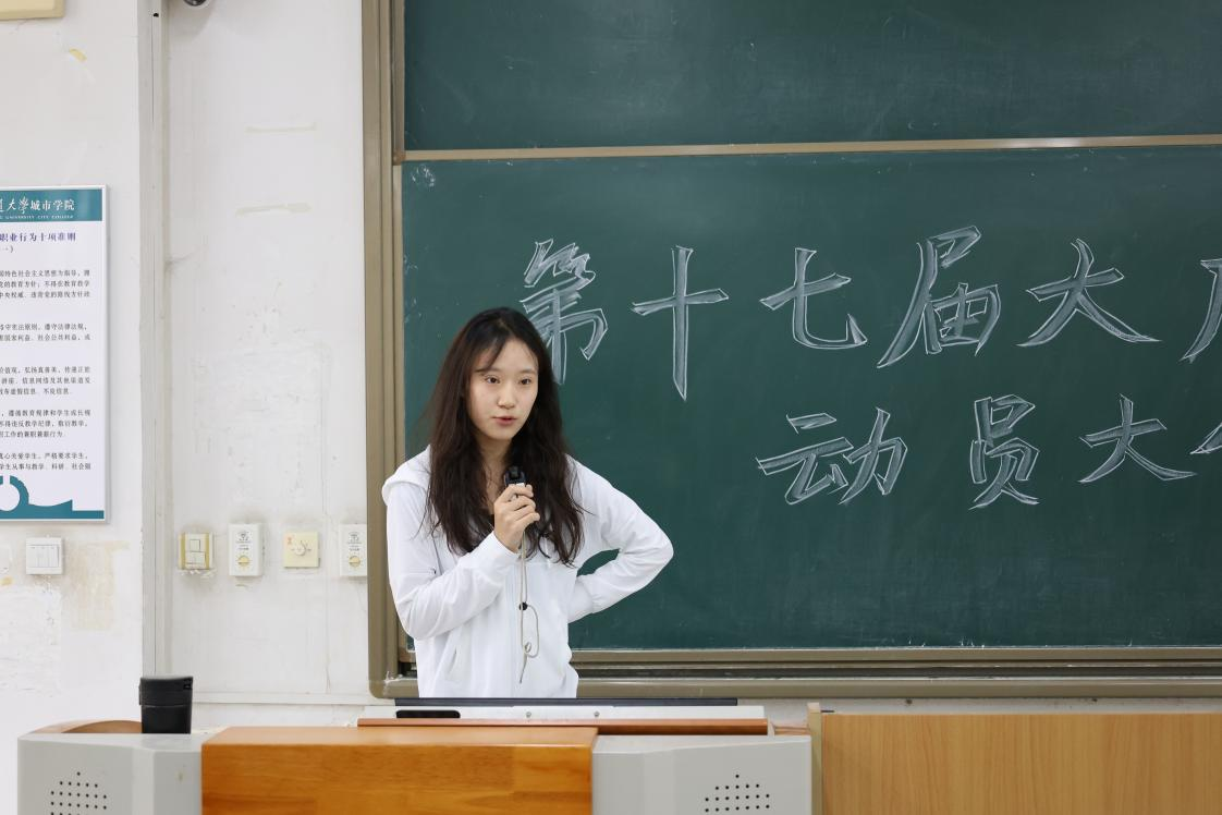 为充分激发学生参与全国大学生广告艺术大赛(简称“大广赛”)的积极性,深入了解赛事信息,4月27日中午,传媒与外国语学院于教学楼C100举行2025年第十七届大广赛动员大会。播音系副主任高宇、大广赛总负责人孙菡忆、网络与新媒体专业赛事负责人郭晨雪、播音与主持艺术专业赛事负责人李灿及全体专业教师、各年级120余名学生参会。会议由播主2301班程闽晴同学主持。