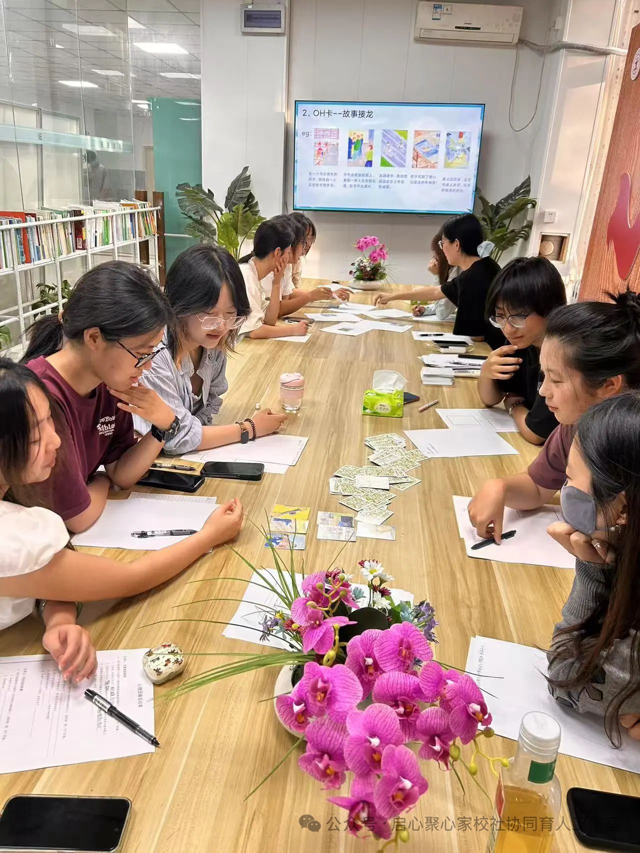 5月15日,在心育专员张德馨的指导下,在五号楼一站式学生社区开展了“减压赋能,悦心前行”OH卡心理沙龙。活动开场,同学们随机抽取卡牌并讲述卡牌引发的联想与故事,此过程将潜意识的想法和情感具象化,从而帮助大家更好地认识自我、释放情绪。在自由探索环节,同学们怀着好奇与期待,纷纷抽取OH 卡进行解读。有人抽到描绘家庭场景的卡牌,分享了自己对亲情的感悟与困惑;有人抽到充满奇幻色彩的图案,讲述了内心深处不为人知的梦想与憧憬。大家的分享或细腻感人,或充满哲思,现场氛围逐渐从陌生拘谨变得真诚热烈。