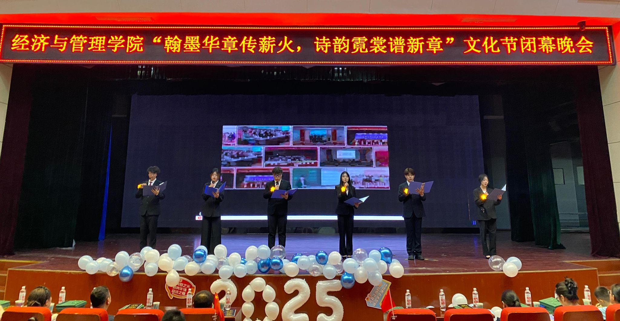 为了弘扬中华优秀传统文化,营造“书香满校园”的浓厚氛围,助力同学们成长为德才兼备的新时代青年,经济与管理学院于5月20日在教二报告厅举办“翰墨华章传新火 ,诗韵霓裳谱新篇——以科技赋能经典,以青春传承文化”第六届“书香四溢、悦读经典”文化节闭幕活动。莅临本次活动的嘉宾有威尼斯7798cc党委副书记、副校长陈书荣、学生处处长辛红伟、智能制造与新能源学院学生党支部书记王丽丽、经济与管理学院学生第一党支部书记刘健、学生第二党支部李璐、传媒与外国语学院学生第一党支部书记吴丹、团委金牧羊、传媒与外国语学院团工委书记韩蓉。经济与管理学院副院长白丹、学生第三党支部书记廉宇婷及经济与管理学院教师出席,本次活动由主持人赵乐琪、李子郯、刘一旋、王蒙恩主持。