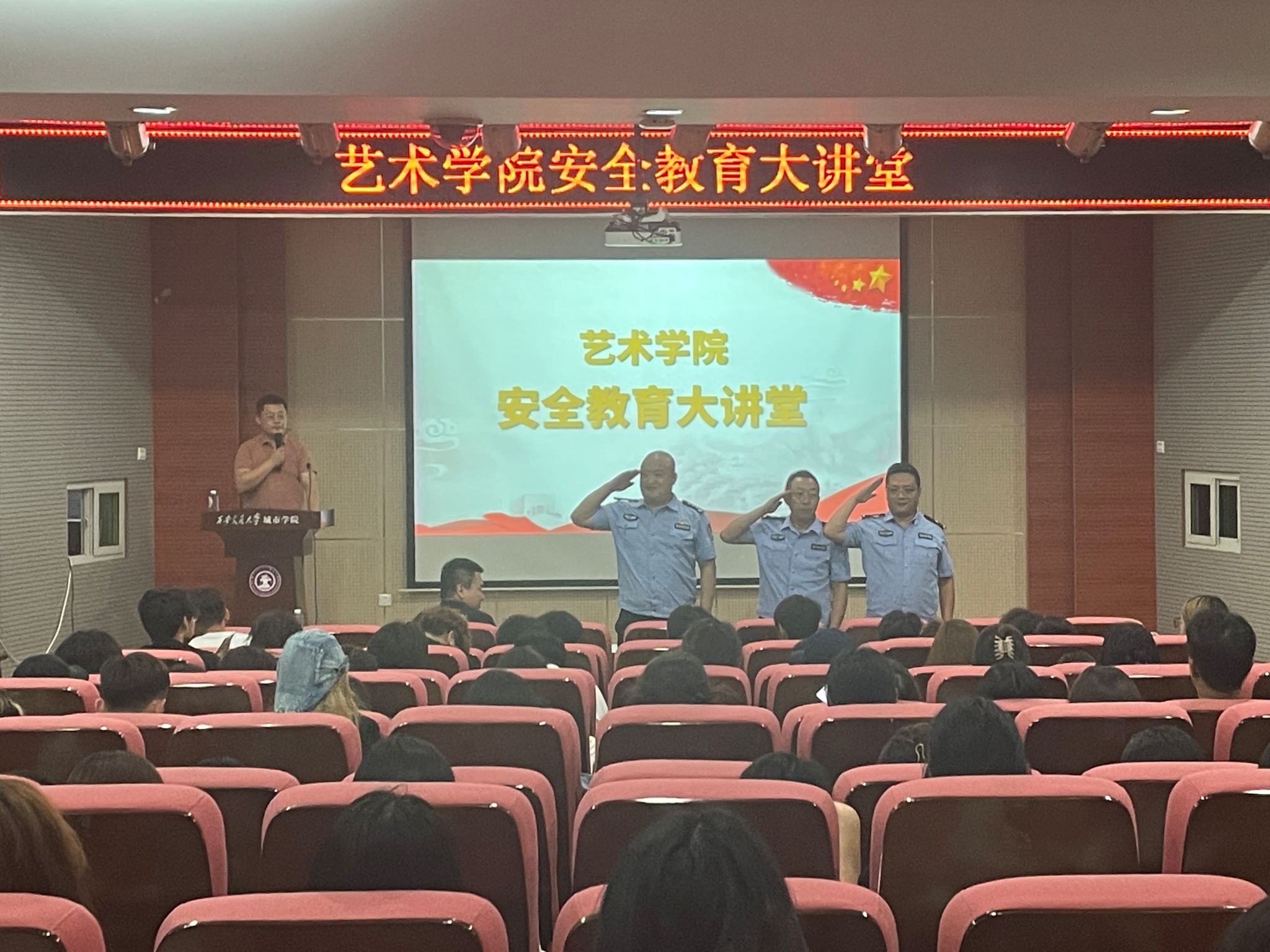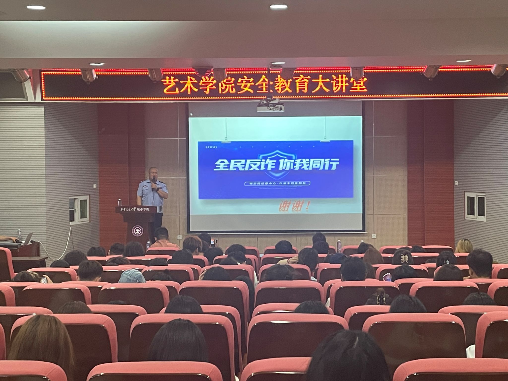 为进一步增强师生安全意识,提升安全防范能力,防止网络诈骗,营造平安和谐的校园环境,艺术学院于5月22日晚在F100报告厅开展“筑牢安全防线,护航青春成长”安全教育大讲堂。本次讲座邀请西安市经开分局尚稷路派出所社区警务队队长黄亮,民警高磊、王雄涛,学校保卫处治安管理科科长冯西军,艺术学院学工办全体老师及23、24级学生参加。讲座由艺术学院院长助理李成主持。