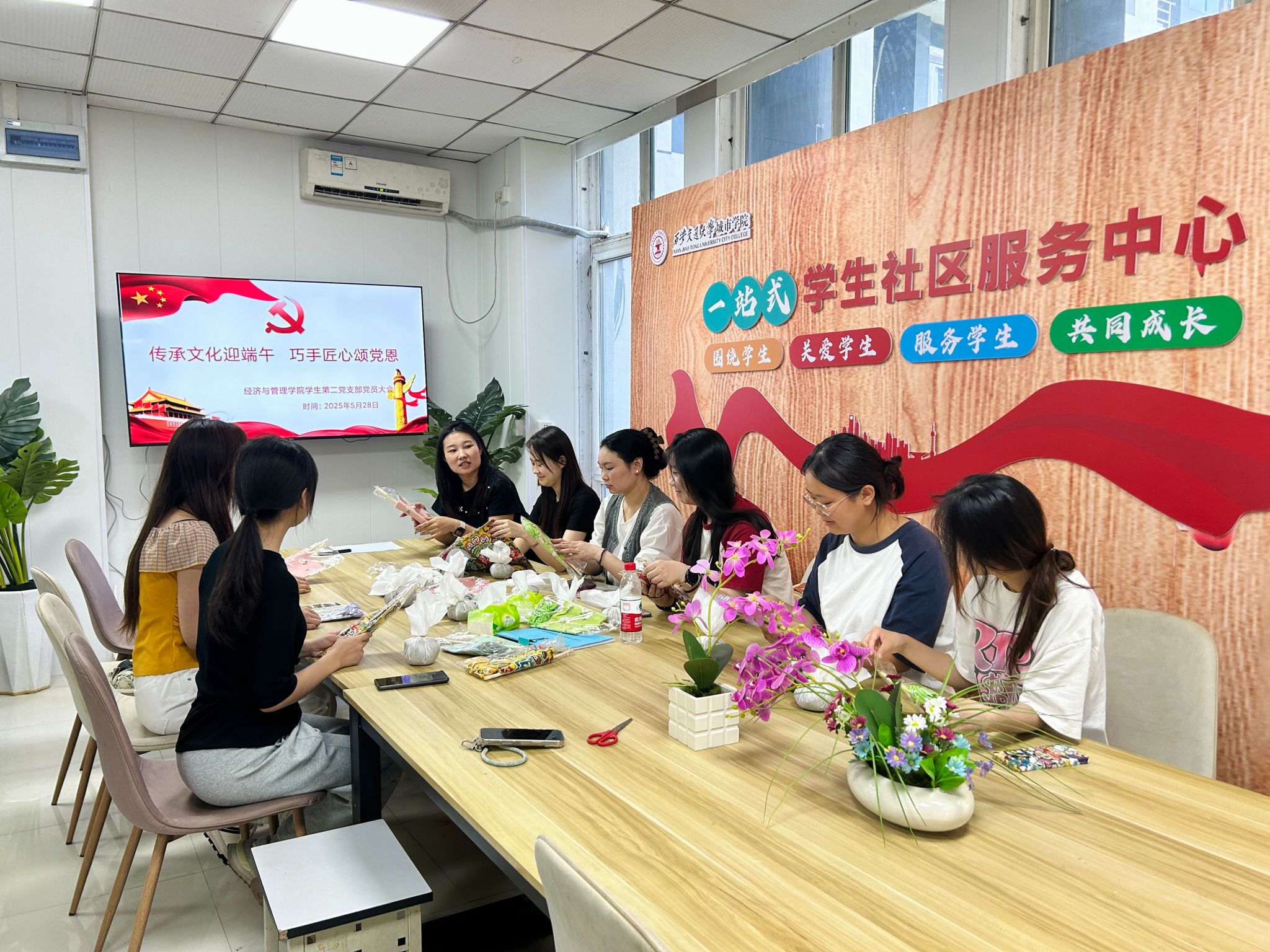端午节来临之际,经济与管理学院学生第二党支部于5月28日在一站式组织开展“传承文化迎端午 巧手匠心颂党恩”端午手工制作活动。13名学生党员参与手工制作,通过体验传统手工艺,感受节日文化内涵,传递爱党爱国情怀。