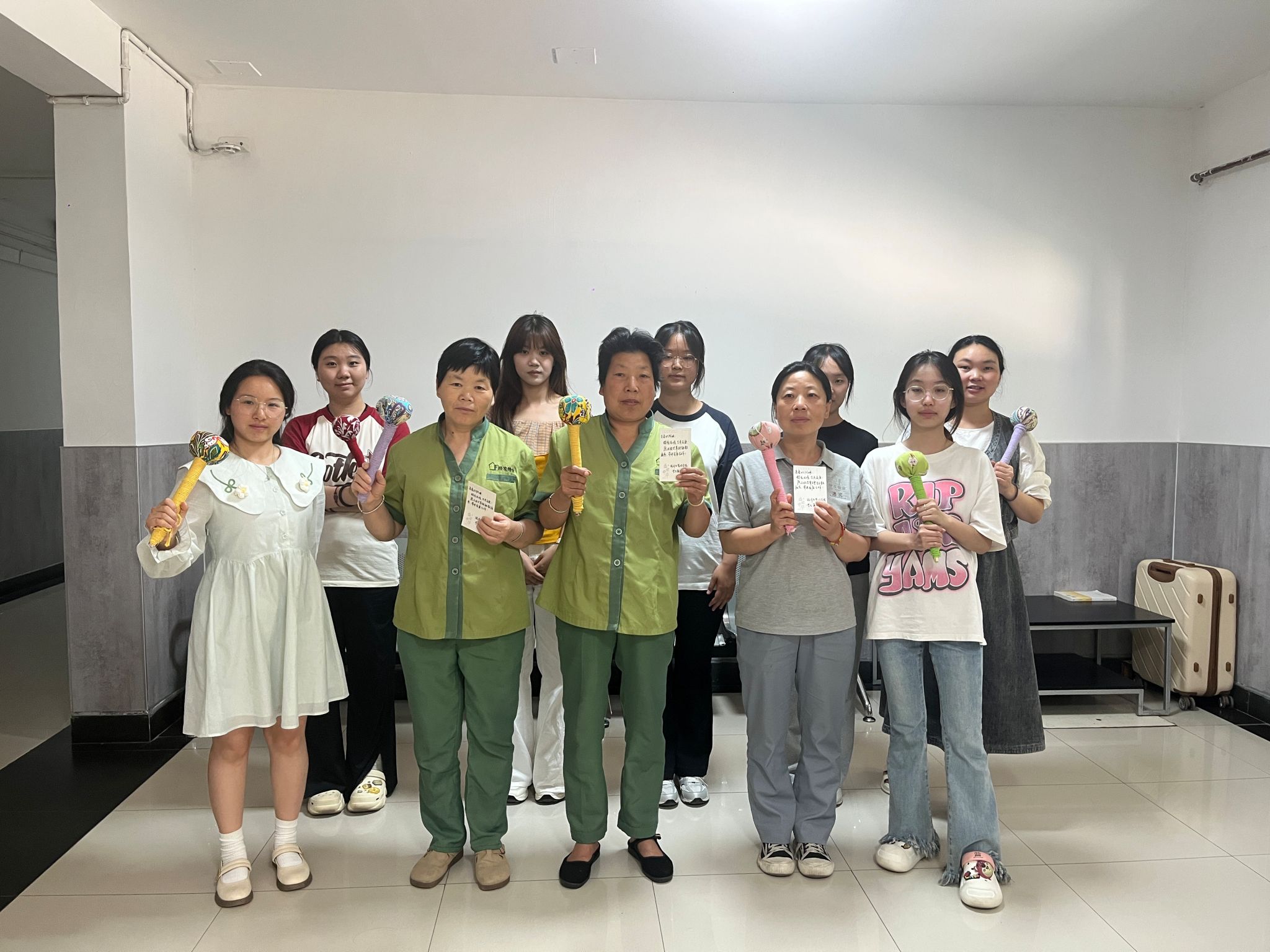 活动尾声,党支部将手工成果赠予一号楼的宿管阿姨以及后勤工作人员并附上手写祝福卡片。“没想到同学们做的养生锤这么精致!”收到礼物的阿姨们连连称赞。学生党员张璐表示:“这次活动既让我们体会到劳动的快乐,更深刻理解了‘为人民服务’的宗旨,是一堂生动的实践党课。”