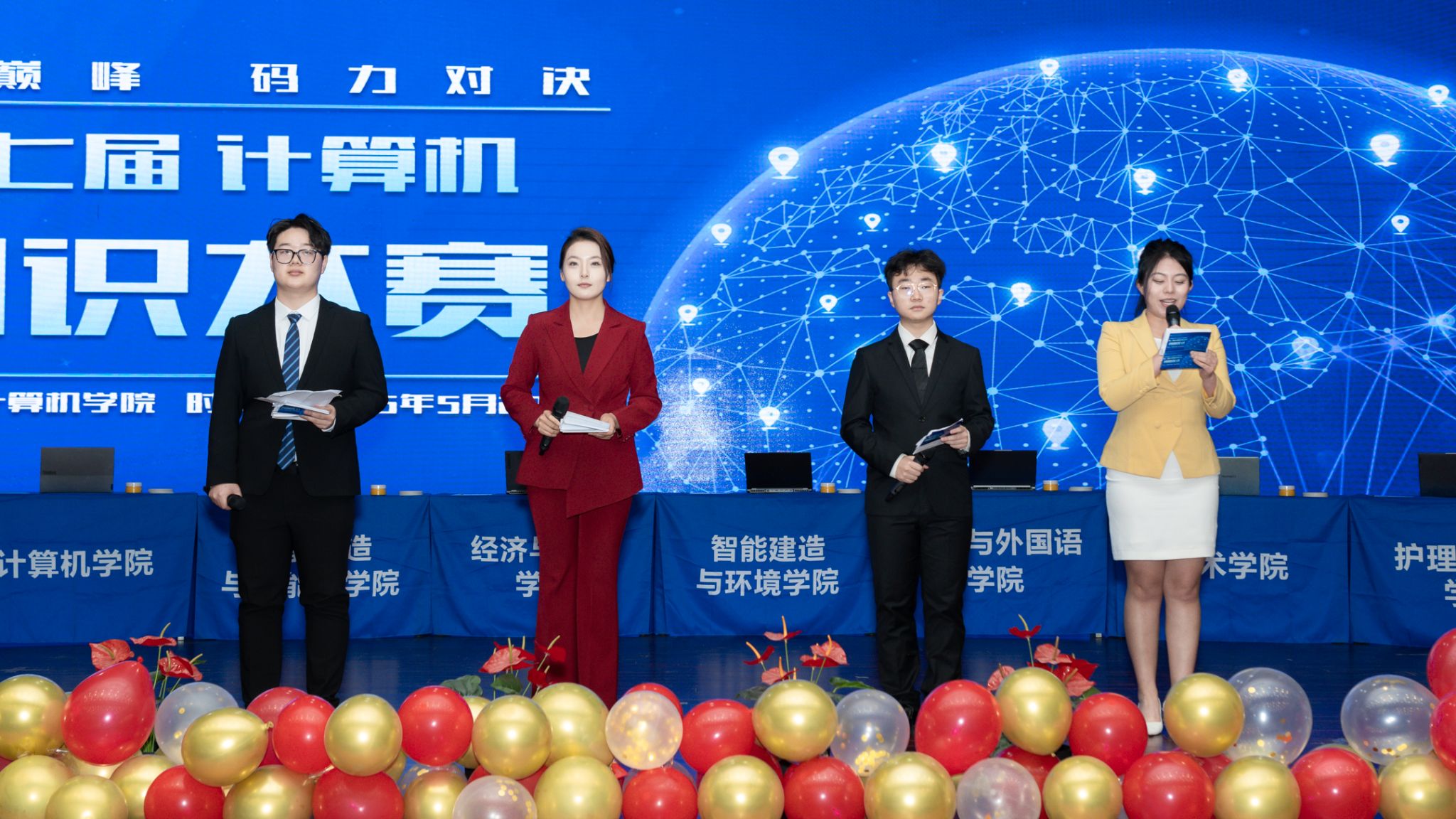 为进一步丰富和拓展应用型人才的培养途径,巩固学生在课堂上所学的计算机应用技术知识,计算机学院于5月29日在教二报告厅举办了“智算巅峰,码力对决”第七届计算机知识大赛决赛暨第二届计算机文化月闭幕仪式。校长助理、行政人事部部长姬志国,校长助理、财务处处长马江涛,党委工作部部长霍伟森,学生工作处处长辛红伟,党委工作部副部长、团委书记茹静以及各二级学院学工负责人、团工委书记,计算机学院院长姚全珠、副院长许大炜,教工党支部书记杨恩宁以及全体学工办辅导员、学生代表参加活动。活动由马长旺、刘芝菡、王艺博、刘慈四位同学主持。