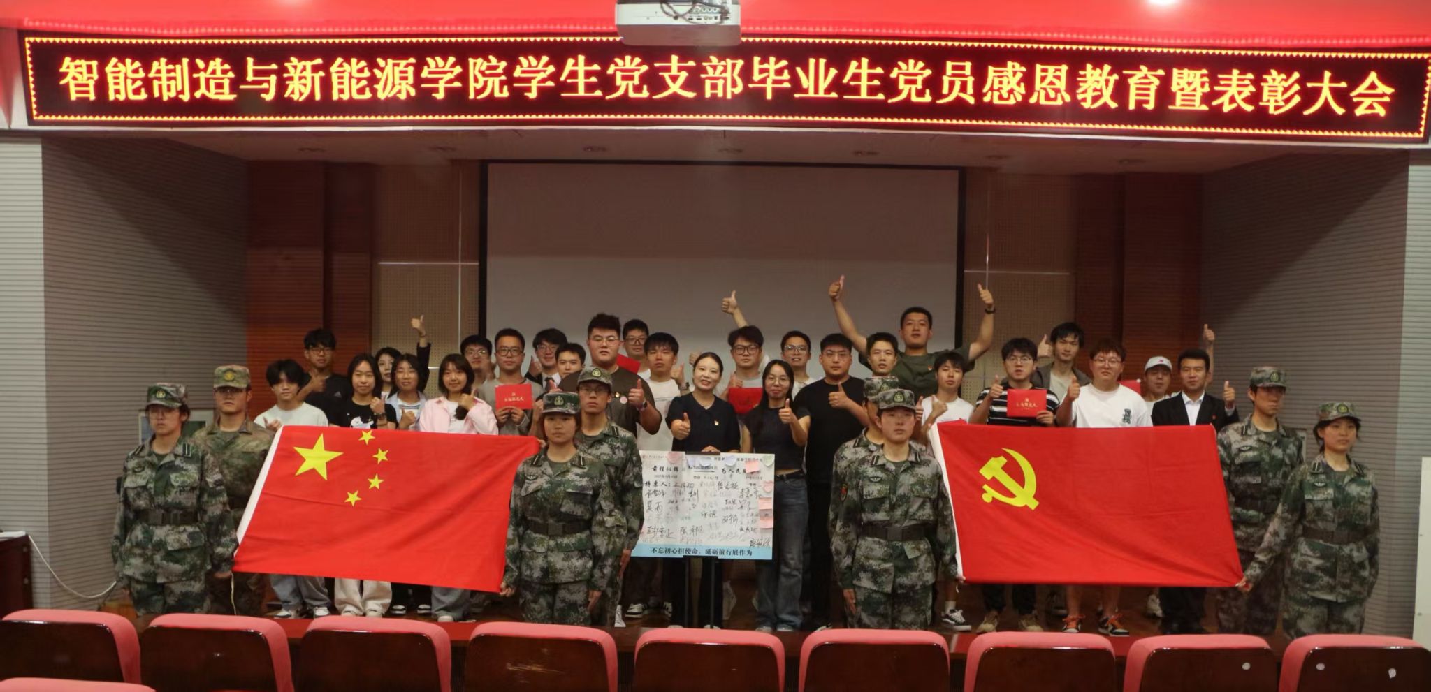 为传承红色基因,强化毕业生党员的使命担当,智能制造与新能源学院学生党支部于5月30日在F100会议室举行"不忘初心担使命,砥砺前行展作为"毕业生党员感恩教育暨表彰大会。智能制造与新能源学院学生党支部书记王丽丽、组织委员史晓薇、宣传委员童治杰、团工委书记张哲源与党支部全体党员齐聚一堂,共同见证这一充满仪式感与荣誉感的时刻。本次会议由张家浩同学主持。