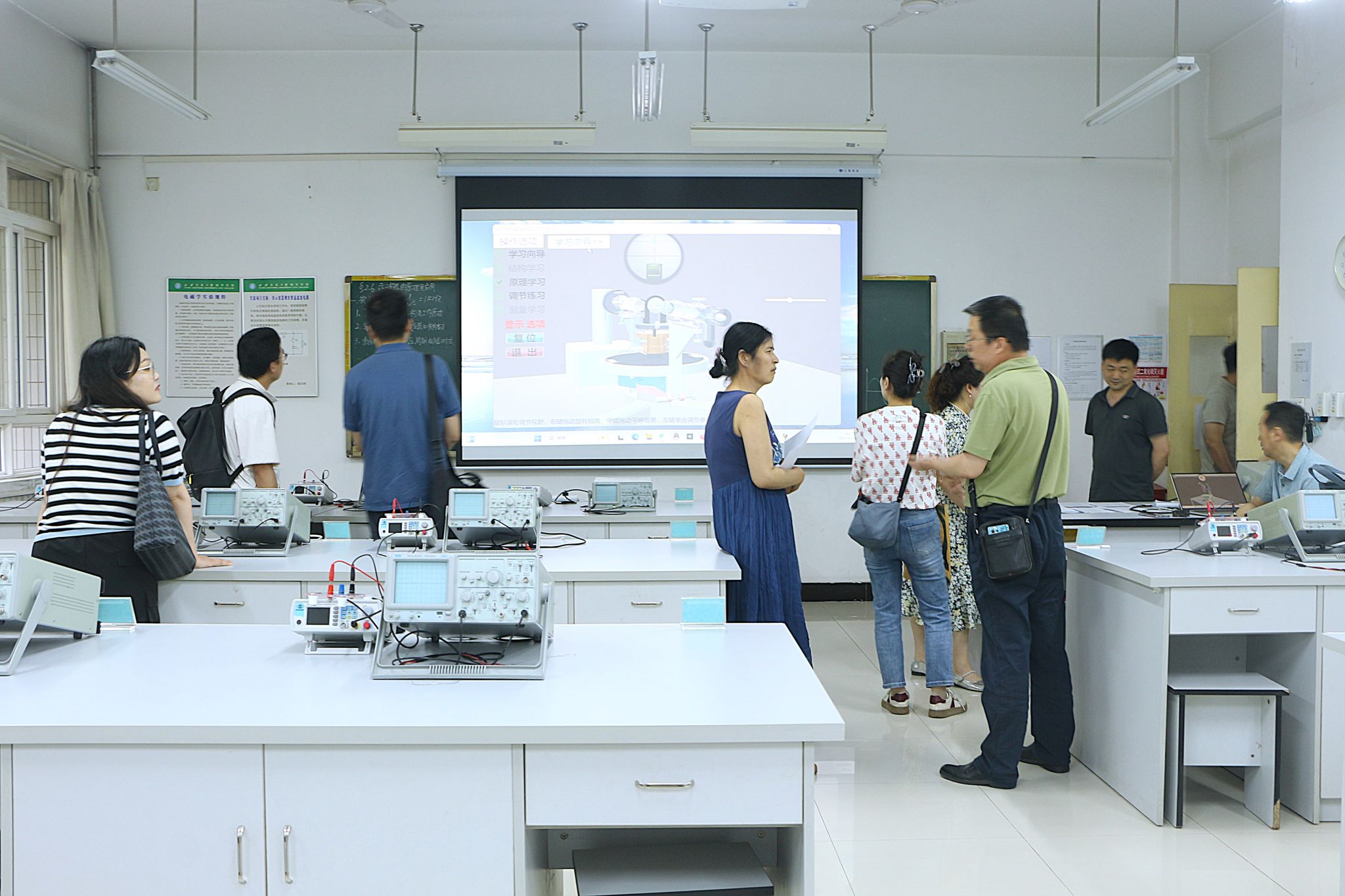 专题报告结束后,双方围绕报告内容及未来合作方向展开自由交流。双方在教学改革、资源共享等方面达成多项共识,为后续合作指明方向。会议尾声,西安明德理工学院一行在学院领导及教师代表陪同下,实地参观大学物理实验室和专业实验室。参观过程中,来宾深入了解各类实验设备功能与使用情况,对实验室的先进设备与创新管理模式给予肯定。