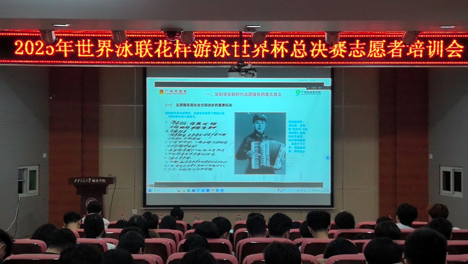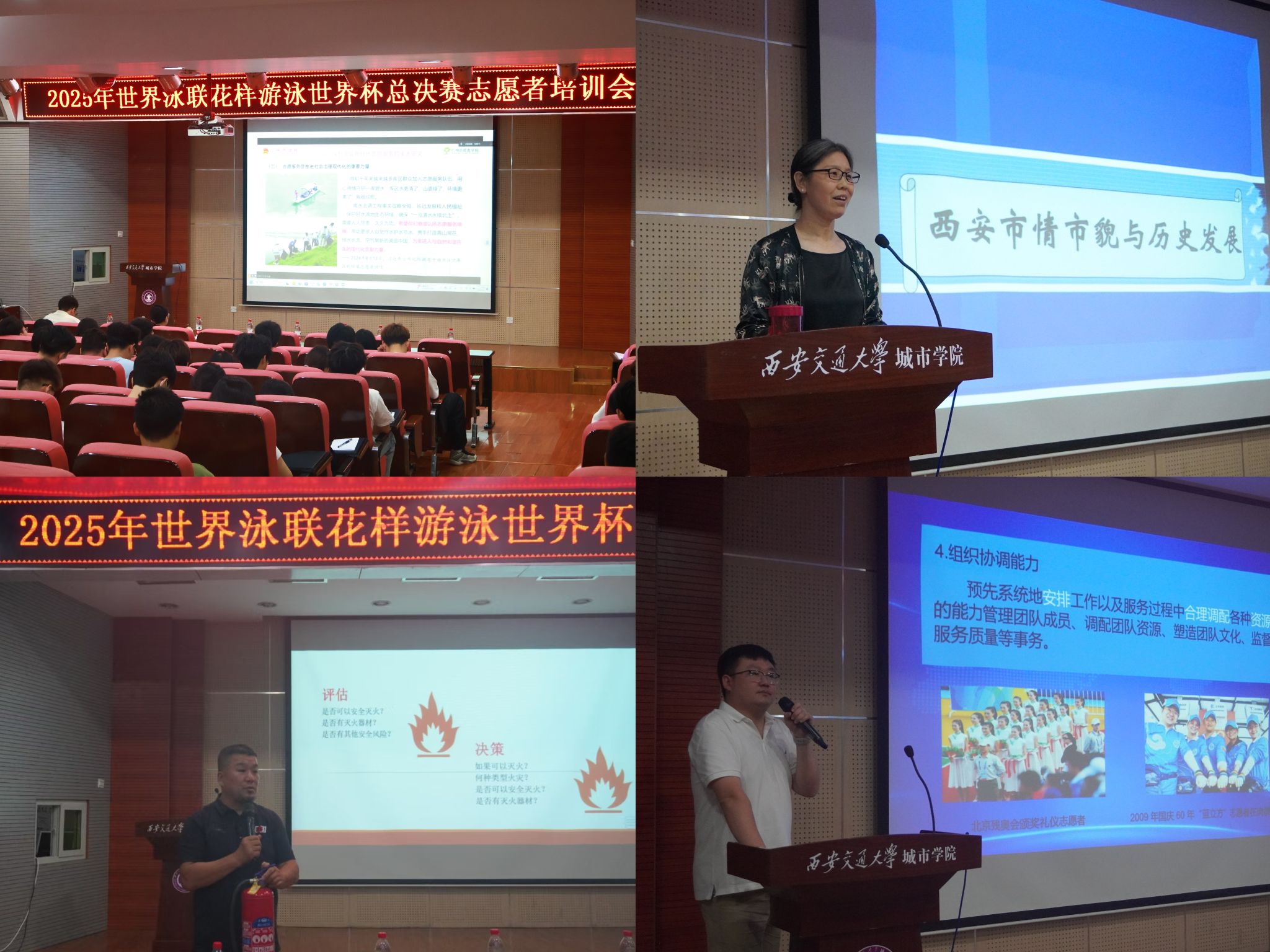 2025年世界泳联花样游泳世界杯总决赛将于6月13日起在西安奥体中心举行。为迎接2025年世界泳联花样游泳世界杯总决赛,城院57名志愿者和2名带队老师于6月5日在F100以饱满的热情投入岗前培训学习,全力提升服务水平。参加本次培训的还有西安外国语大学的志愿者。
