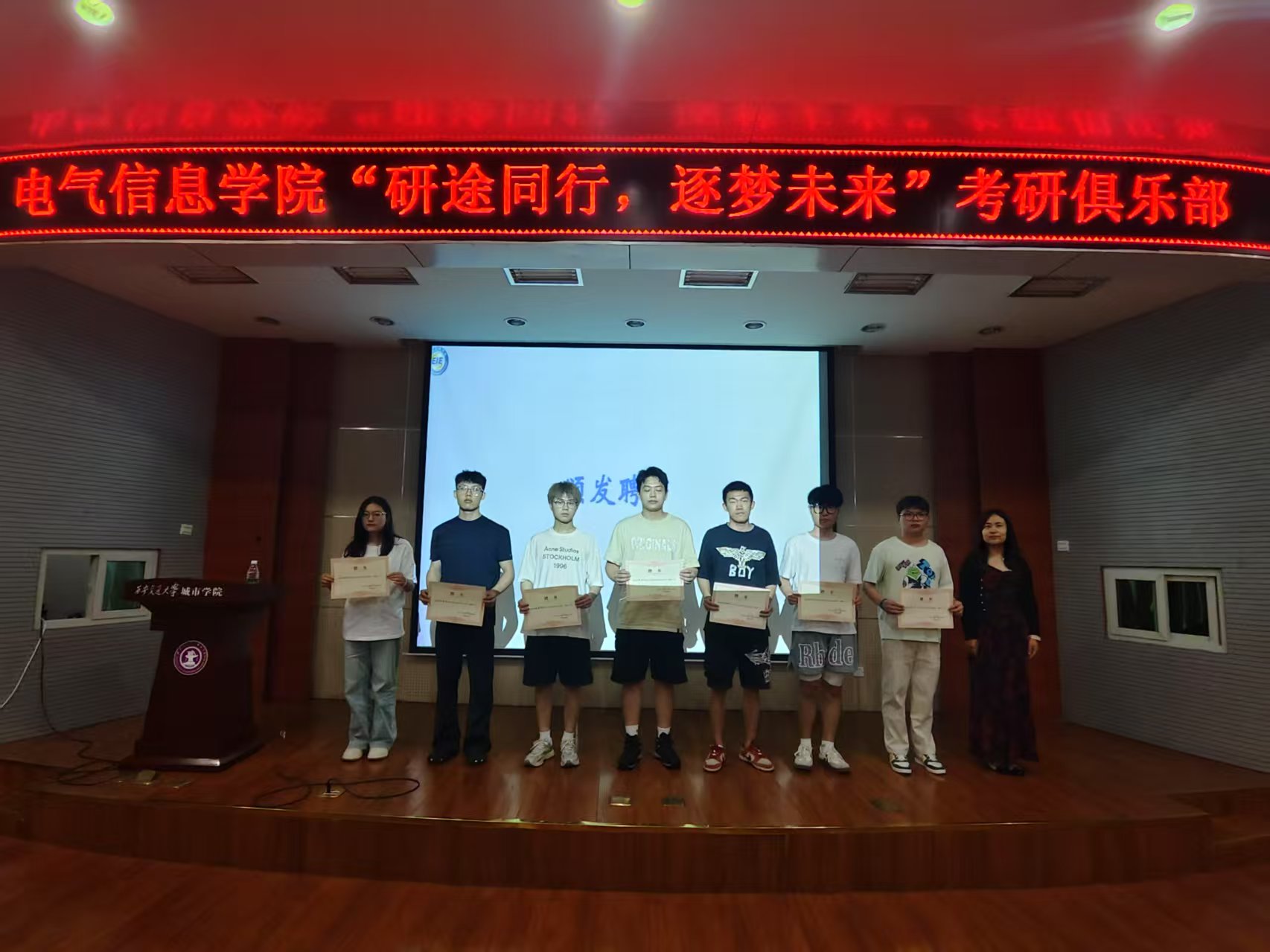 为帮助有考研意向的学生明确方向,科学备考,同时表彰今年考研上岸的优秀榜样,营造互帮互助的良好氛围。电气信息学院于6月6日中午在F100报告厅召开“研途同行,逐梦未来”考研俱乐部暨毕业生文明离校活动。