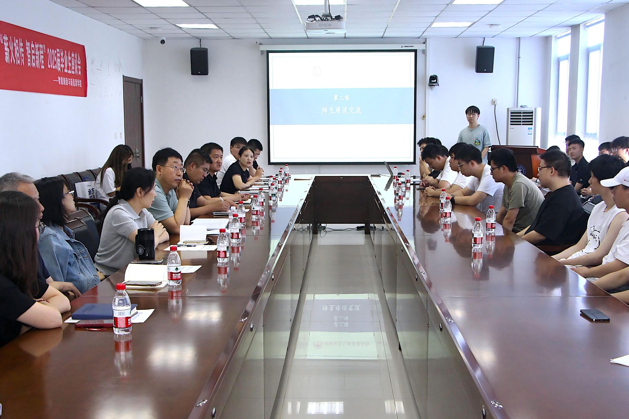 师生座谈交流环节,毕业生们踊跃发言,分享求职路上的收获与困惑、毕业设计的探索与难题,也对学院教学资源优化、学习生活环境细化等提出建议,同时对学院的培养和老师的悉心教导表达了衷心感谢。老师们认真倾听、耐心回应,与毕业生们进行了深入交流。现场交流氛围热烈而真诚,搭建起师生双向沟通的温暖桥梁。