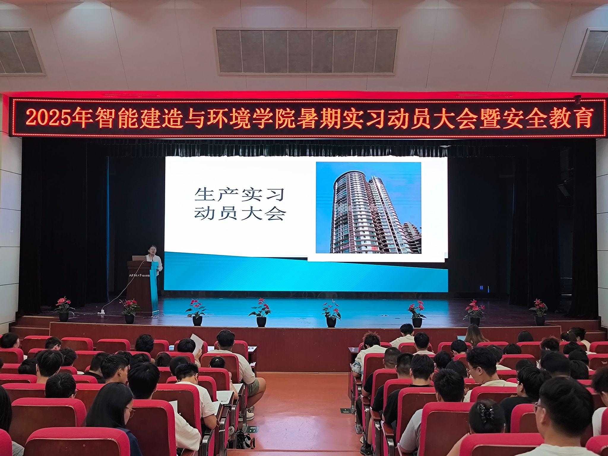 为保障2025年暑期实习教学安全有序,各二级学院陆续召开动员会。6月17日,智能建造与环境学院组织土木工程本科2022级、专升本2024级学生,在教二报告厅开展生产实习动员及安全教育大会。