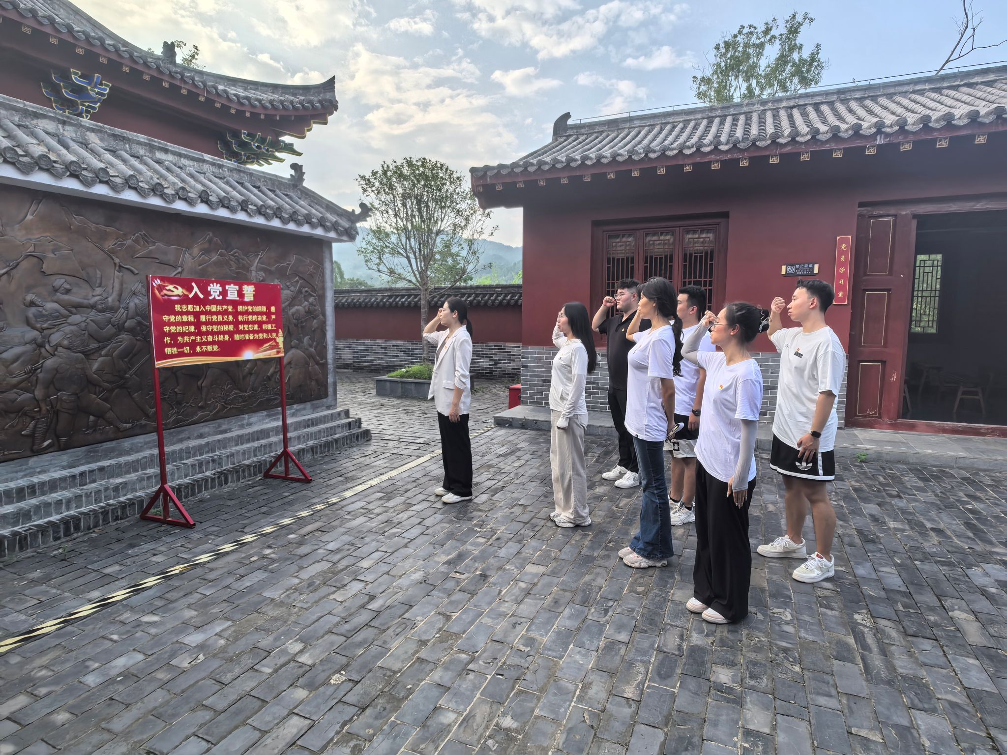 在庄严肃穆的会议旧址前,面对鲜红的党旗,全体党员重温入党誓词,铿锵誓言回荡,表达了为党的事业奋斗终身的决心。党支部书记王丽丽以“传承红色基因,担当时代使命”为题,在现场讲授了专题党课。她结合研学所见所感,激励青年党员和积极分子要深刻领悟革命精神内涵,不忘初心、砥砺前行,努力成长为有理想、敢担当、能吃苦、肯奋斗的新时代青年。