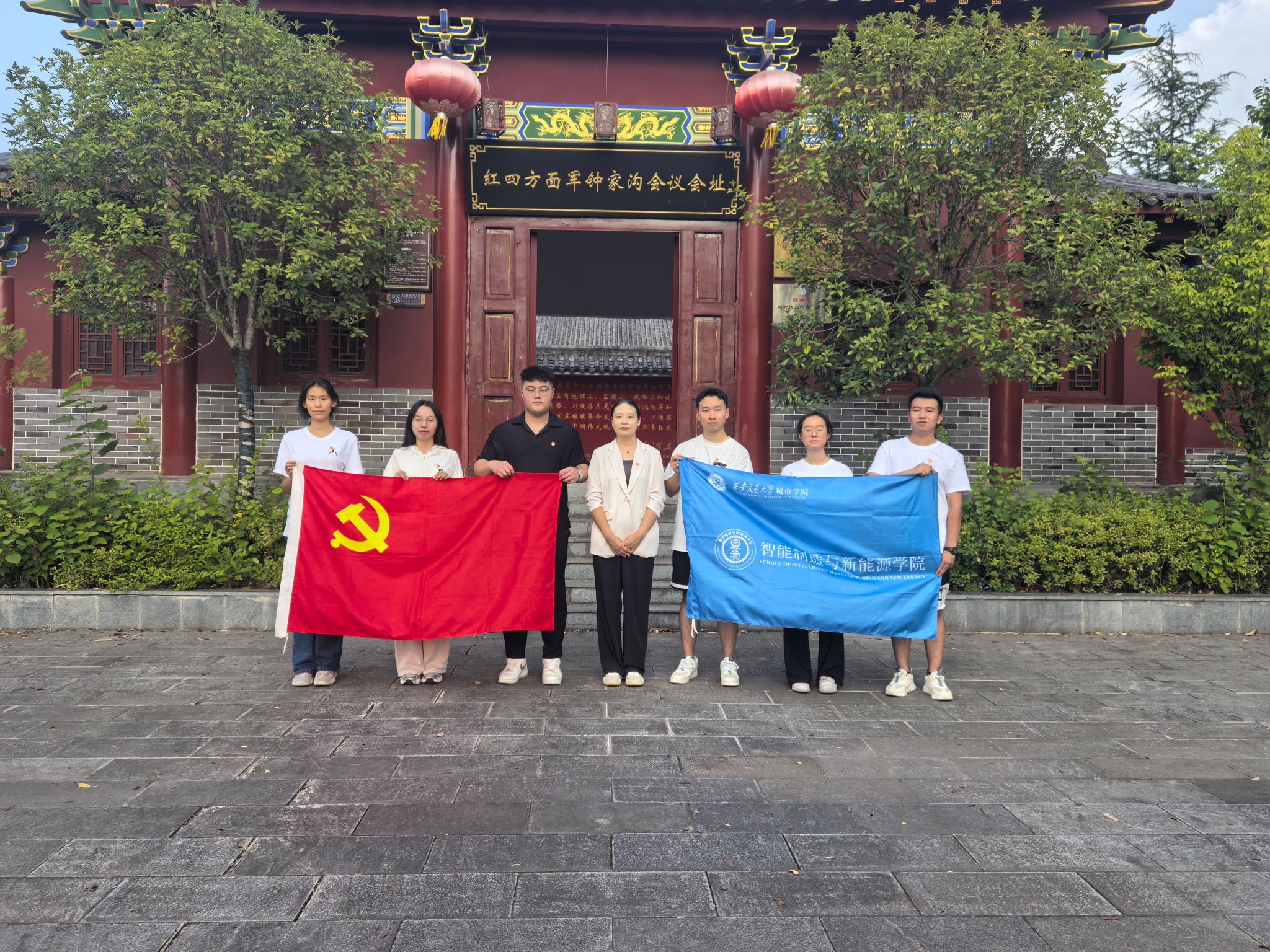 为纪念中国人民抗日战争暨世界反法西斯战争胜利80周年,深入学习贯彻习近平新时代中国特色社会主义思想,传承红色基因。7月13日,智能制造与新能源学院学生党支部组织党员及入党积极分子代表,赴西乡县骆家坝红四方面军钟家沟会议旧址开展实践研学。本次实践研学由党支部书记王丽丽带队,支部委员史晓薇、童治杰参加。
