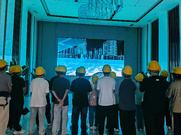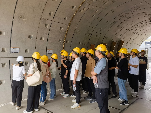 同学们在企业讲解人员的带领下依次实地观摩预制混凝土衬砌管片、蒸压砂加气混凝土砌块等智能化生产线、全息投影展示厅,企业讲解人员详细讲解了预制构件制备的全过程,同学们结合课堂所学知识,就施工安装工艺问题与工程师深入交流。