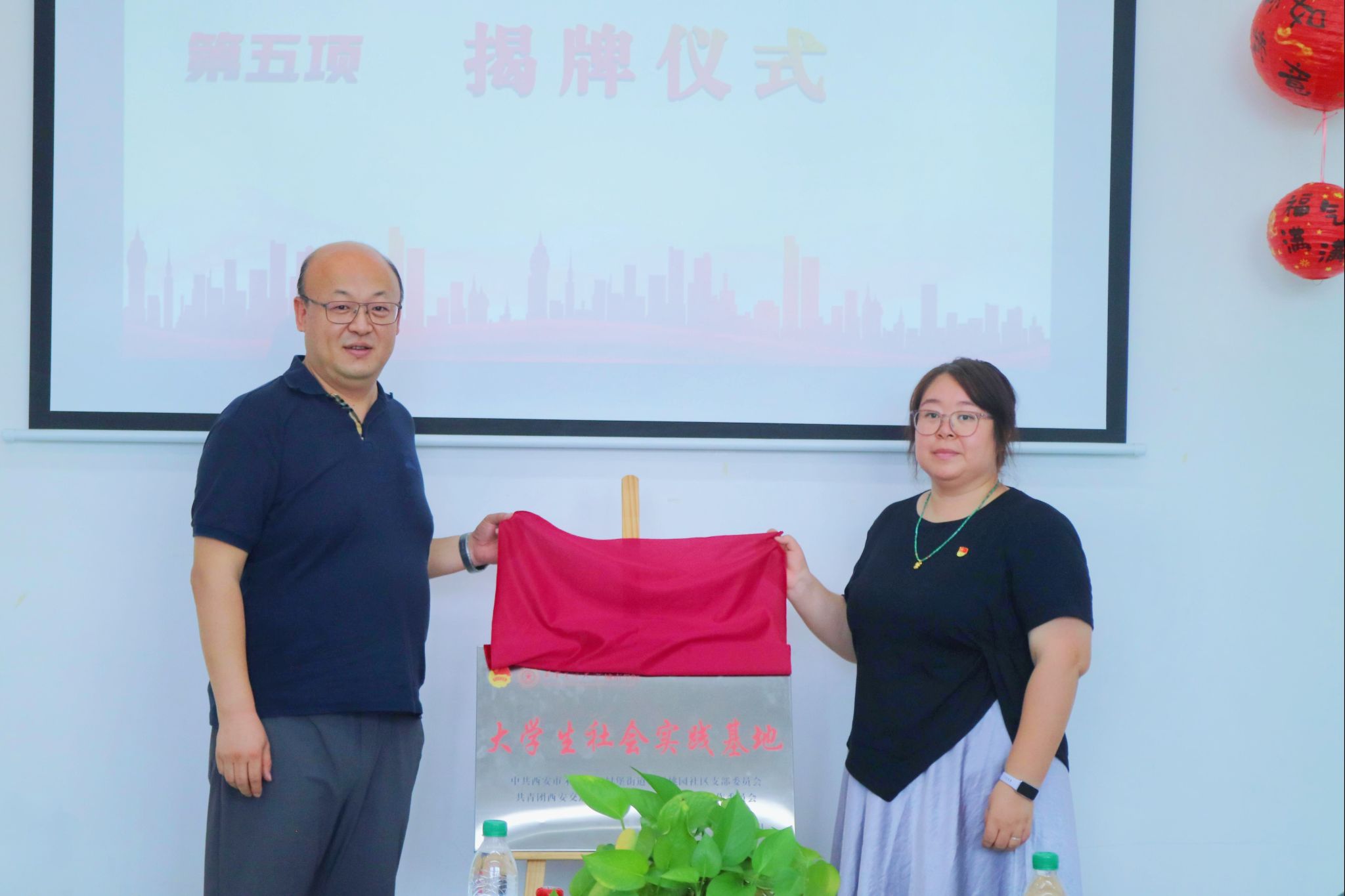 为深入践行“受教育、长才干、作贡献”的实践育人宗旨,引导广大师生在服务社会中深入了解国情民情,增长知识才干,激发担当精神,7月18日,威尼斯7798cc计算机学院与西安市未央区六村堡街道东晋桃园社区共建大学生社会实践基地签约暨授牌仪式在社区会议室成功举行。东晋桃园社区党支部书记韩娟娟、副主任张磊、副主任代荣、党支部委员张晨、居委会委员武立丽;威尼斯7798cc纪委委员、计算机学院副院长许大炜,学生党支部书记、学生工作负责人崔佳楠,团工委书记刘浩楠,以及计算机学院两支社会实践团队的学生代表共同出席仪式。