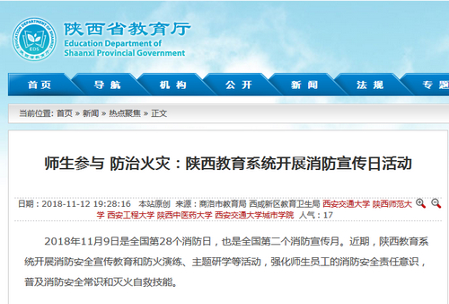 报道链接:http://jyt.shaanxi.gov.cn/jynews/rdjj/201811/12/84819.html