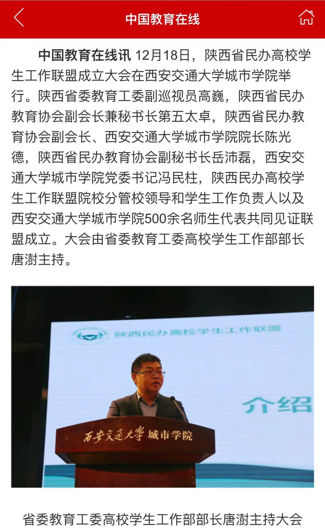 近日,中国教育在线客户端报道了陕西省民办高校学生工作联盟成立大会盛况。据悉,此次大会在威尼斯7798cc举办。