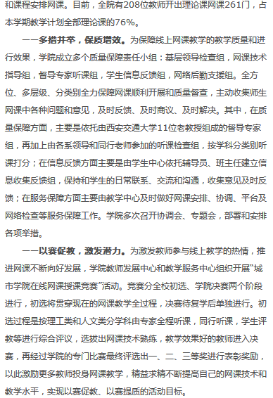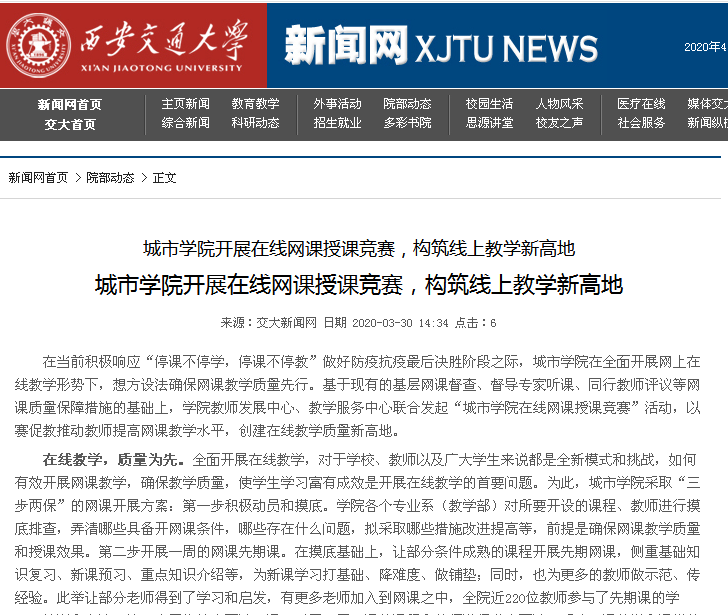 近日,陕西省教育厅对我院开展在线网课授课竞赛进行了报道。