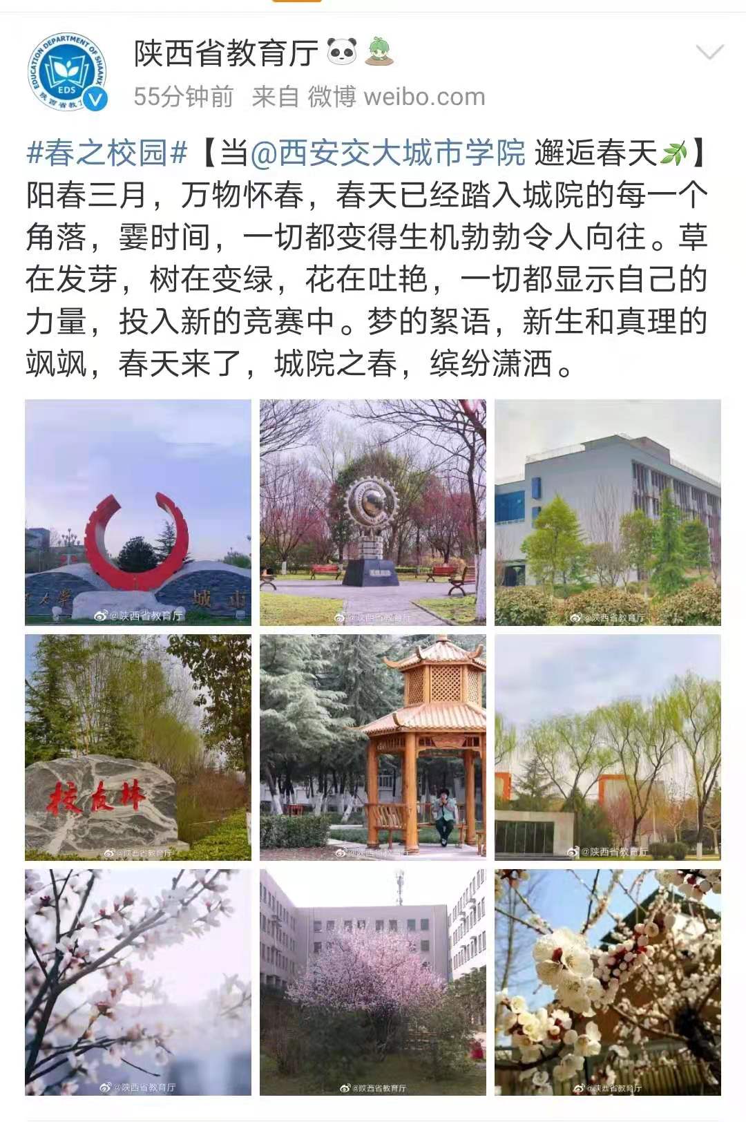 3月30日,陕西省教育厅官方微博推送了学院春日美景美图。