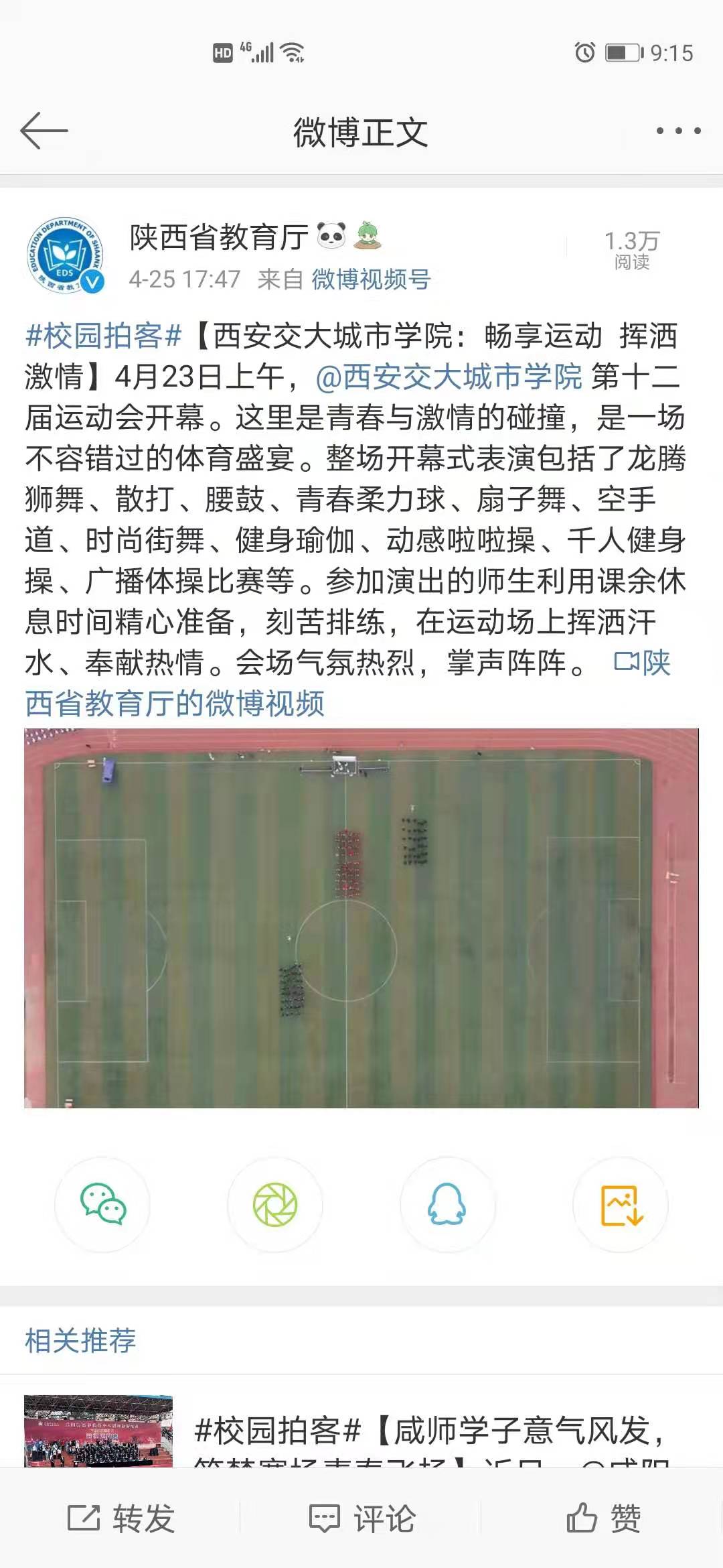 近日,陕西省教育厅官方微博报道了学院第12届运动会情况。