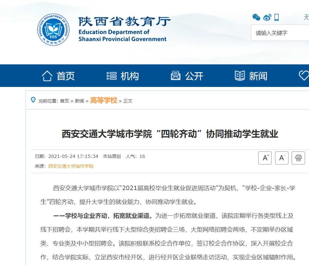 近日,陕西省教育厅报道了学院推动学生就业相关工作。具体链接及内容如下:
