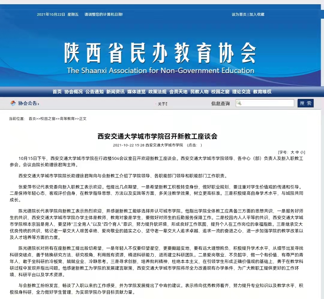 近日,陕西省民办教育协会报道了学院新教工座谈会内容。具体链接及内容如下: