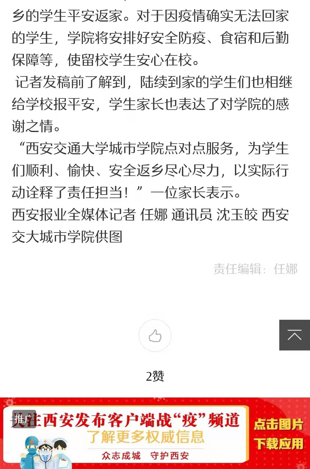 1月17日,西安发布报道了学院为离校返乡学生爱心护航的情况。具体链接及内容如下: