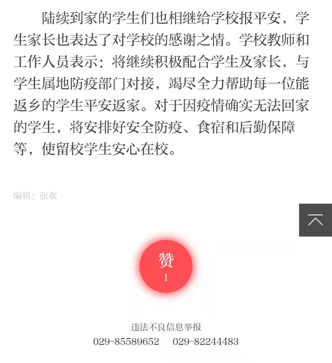 1月17日,三秦都市报-秦闻客户端报道了学院周密安排在校大学生寒假返乡情况。具体链接及内容如下:
