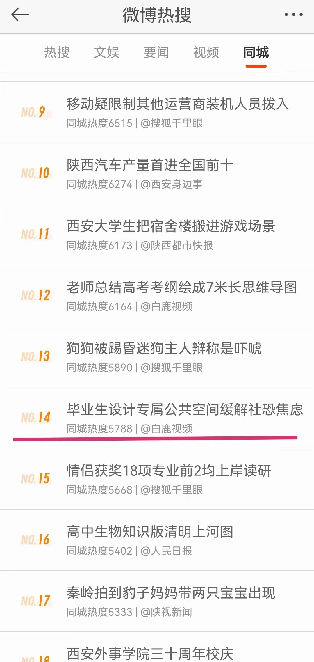 近日,学院艺术系学生毕业作品获媒体关注,并登上微博同城热搜第十四名。具体链接如下: