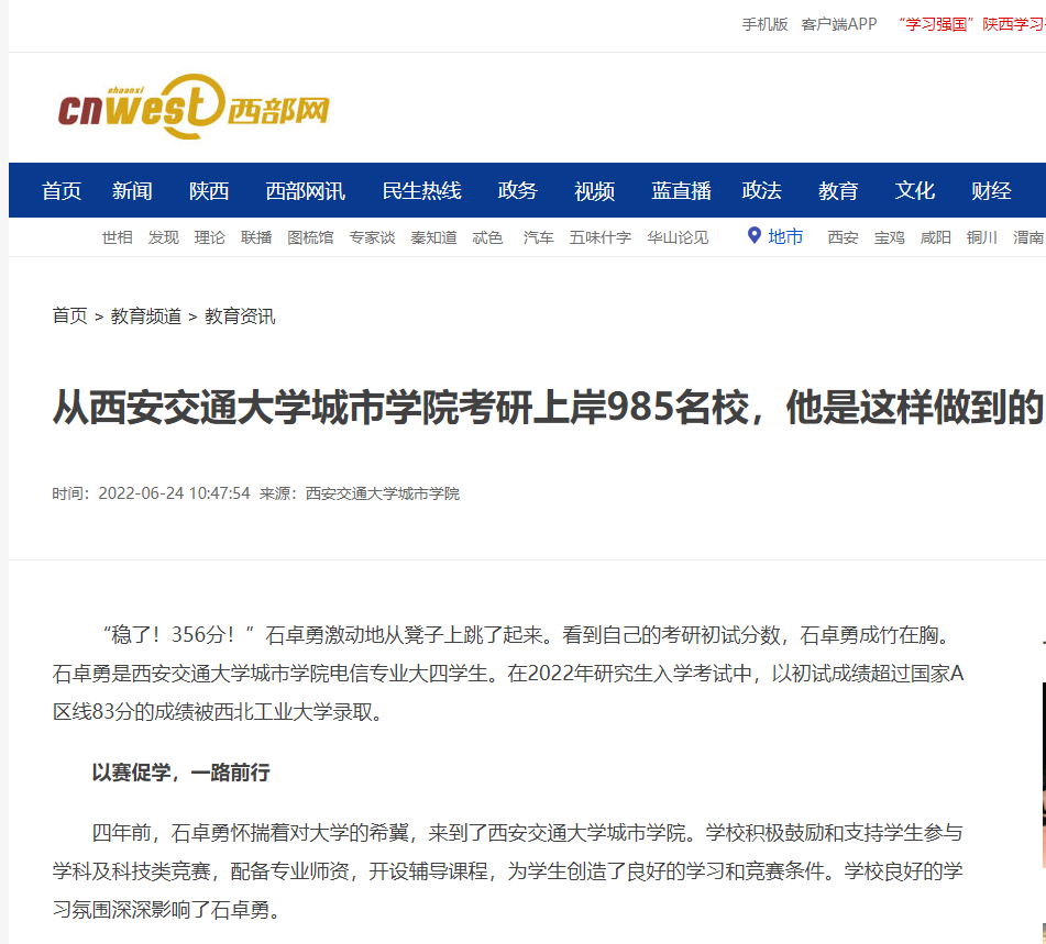 报道链接:http://edu.cnwest.com/jyzx/a/2022/06/24/20702888.html