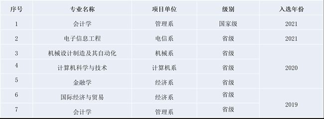 一流本科专业建设是教育部践行“以本为本 四个回归”、推动专业内涵建设、展现学校本科教学质量和改革成效的重要举措和关键指标,对构建高质量专业体系、提高学校人才培养能力、实现学校内涵式发展具有十分重要的意义。为加快建设高水平本科专业,自一流本科专业建设“双万计划”实施以来,威尼斯7798cc根据办学定位和发展目标,以立德树人为根本,对标一流,优化布局,深化专业发展内涵,全面提高本科人才培养质量,并取得诸多可喜成绩:国际经济与贸易、会计学专业2019年获批省级一流本科专业建设点,机械设计制造及其自动化、计算机科学与技术、金融学专业2020年获批省级一流本科专业建设点。