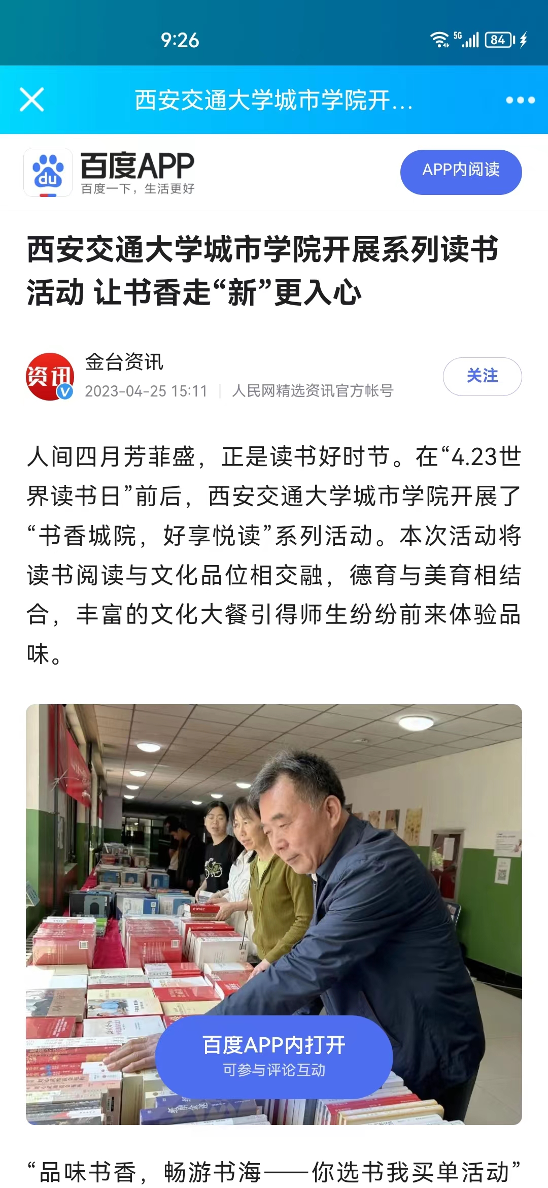 近日,人民网、金台资讯、新浪网对学院开展“书香节”系列活动进行了报道。内容如下:
