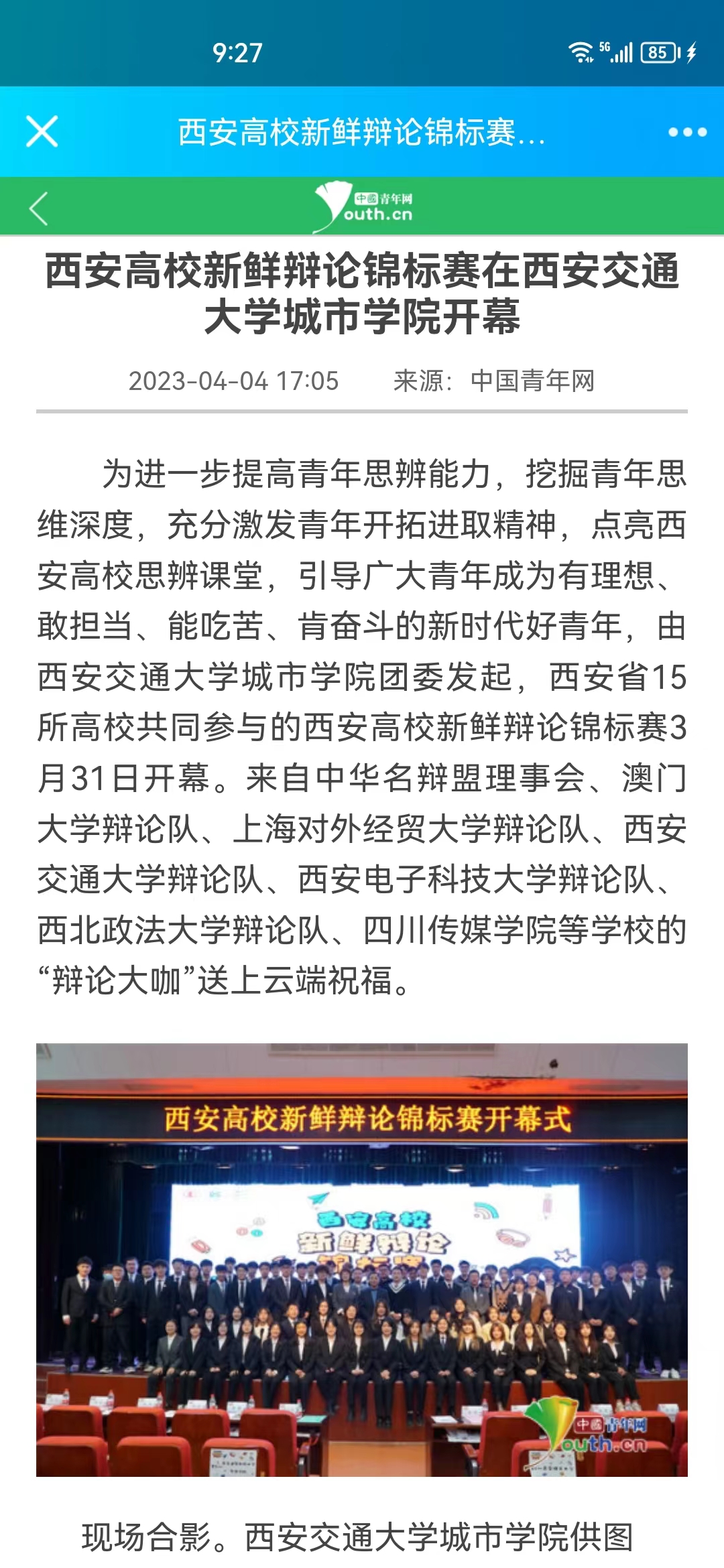 近日,中国共青团网报道了学院举办西安高校新鲜辩论锦标赛内容。具体如下: