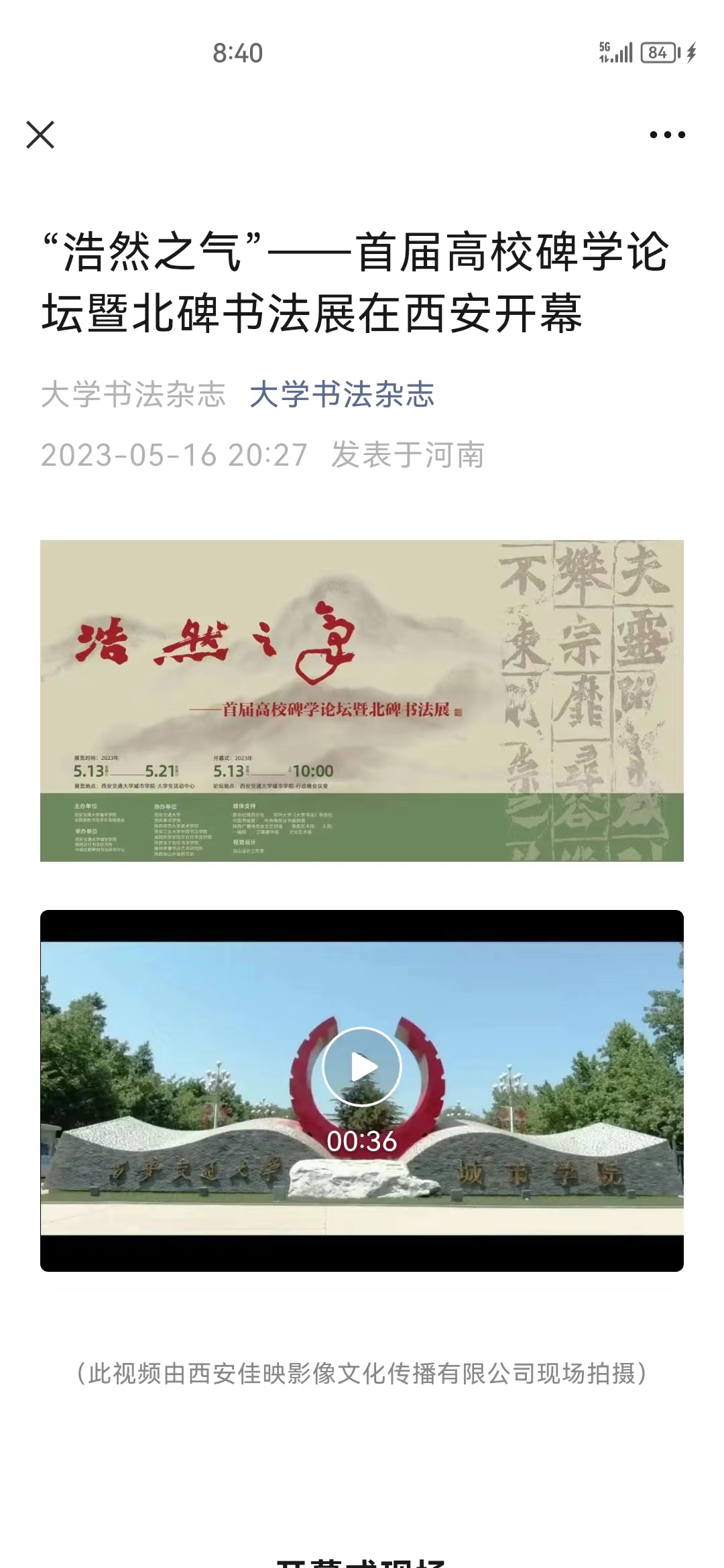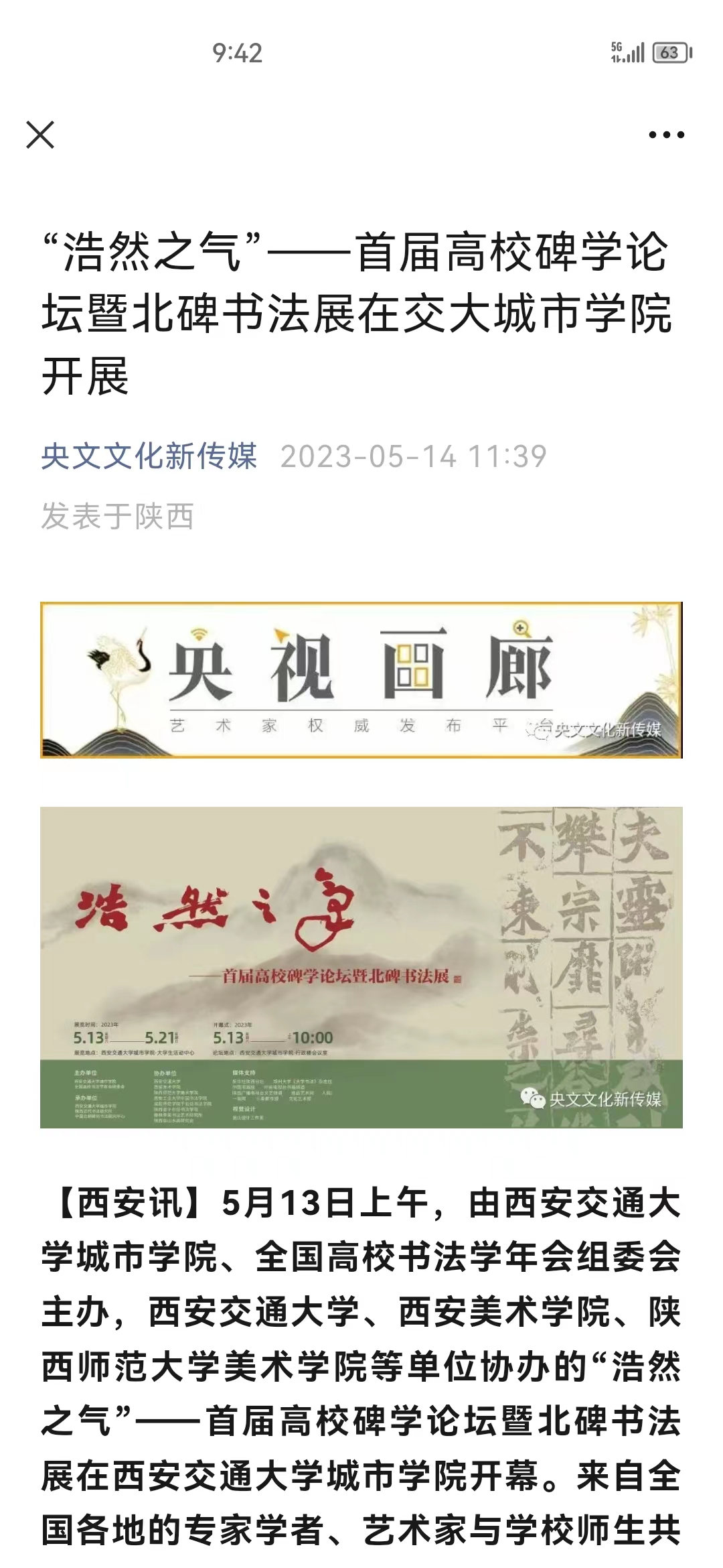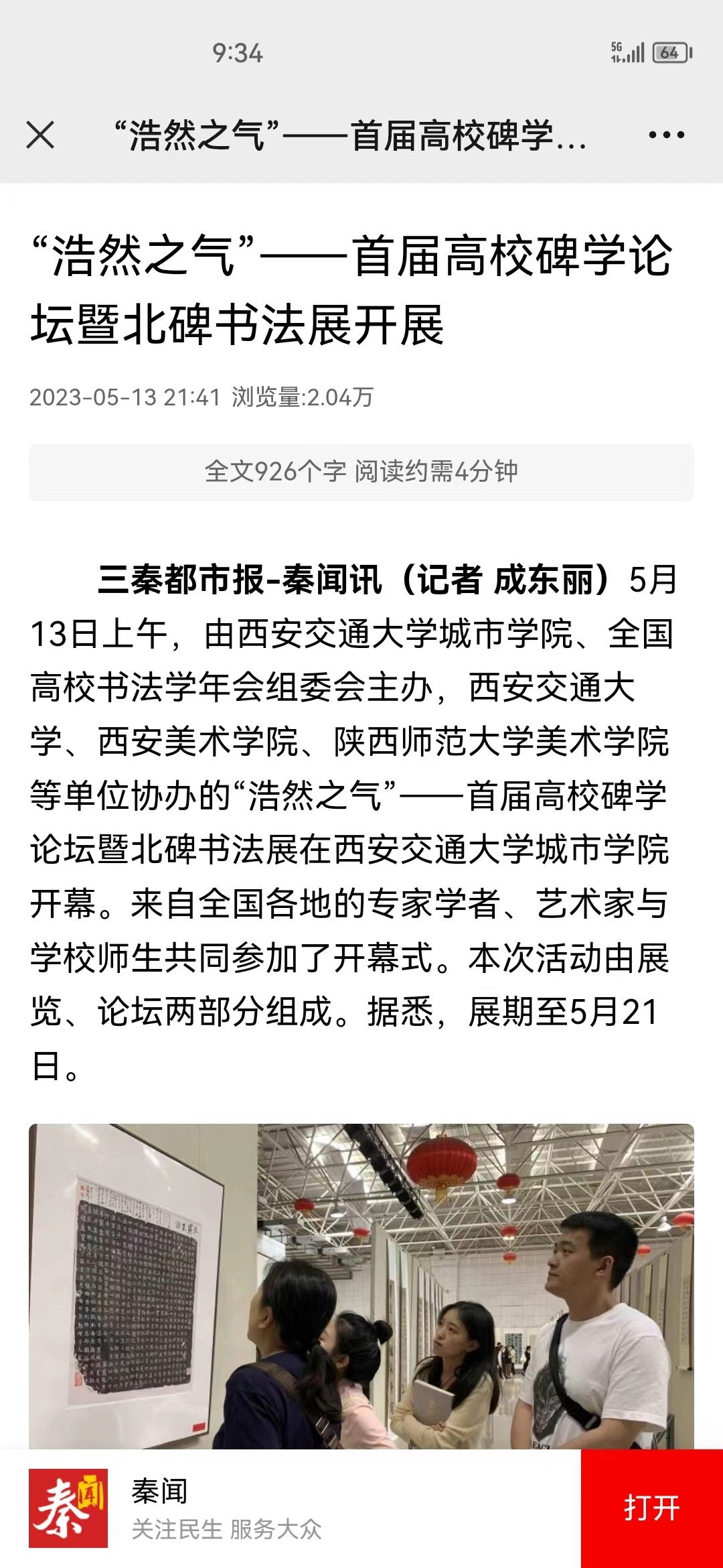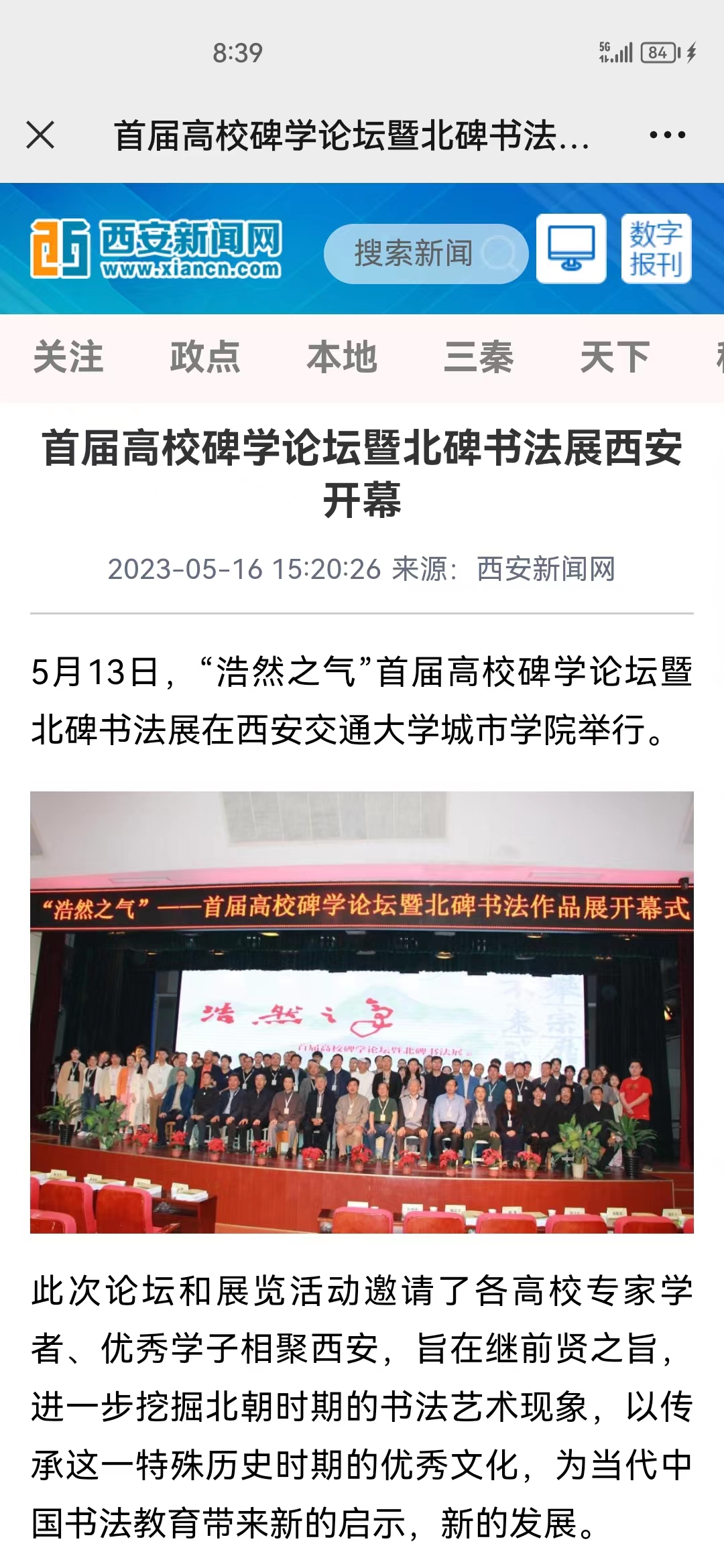 近日,新华社、三秦都市报-秦闻客户端、西安发布、西安新闻网、大学书法杂志、文化艺术网、陕西文艺、央文文化新传媒、译艺术、书画频道等对首届全国高校碑学论进行了报道。