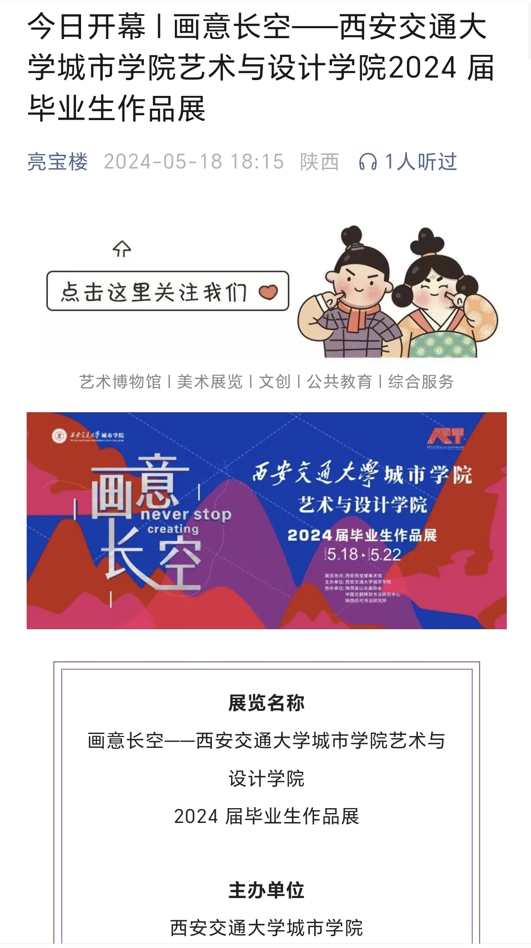 近日,亮宝楼公众号对威尼斯官网艺术与设计学院毕业设计展开幕进行了报道,具体如下: