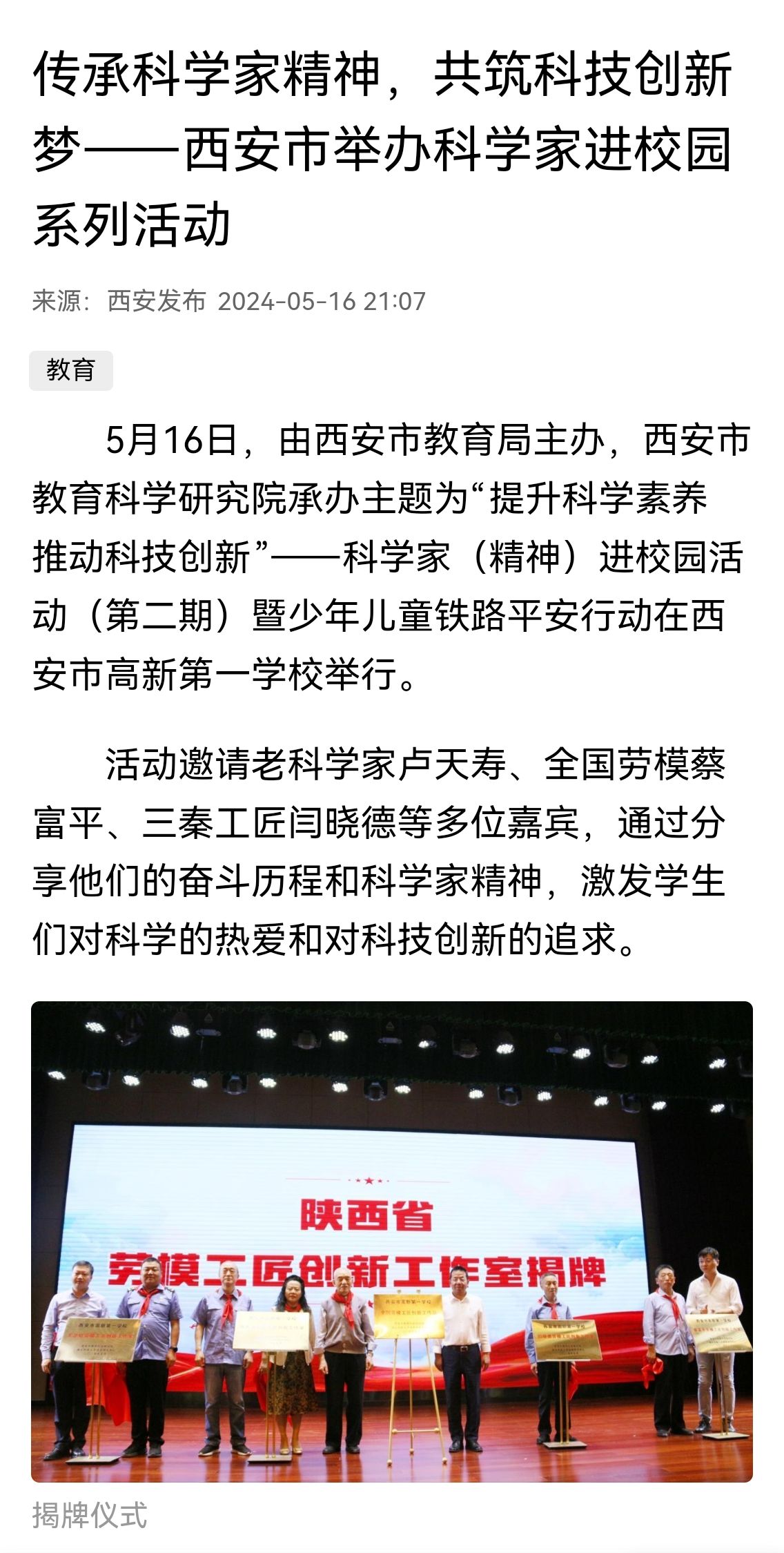 近日,西安发布报道了威尼斯官网学子亮相“科学家(精神)进校园”活动。