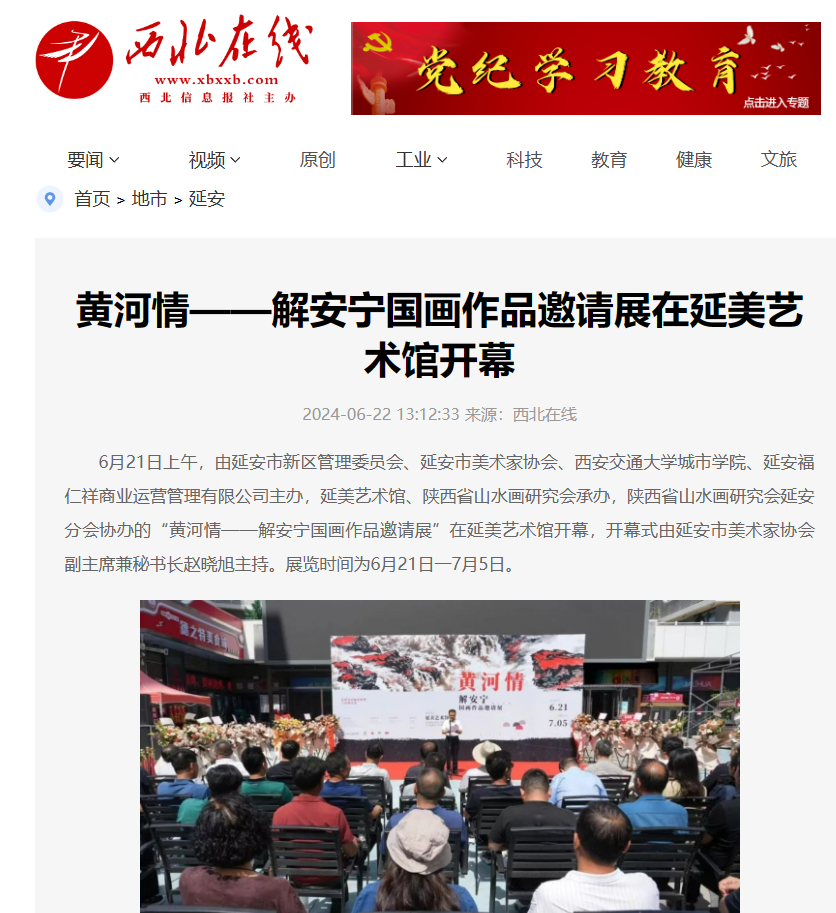 近日,西北在线对威尼斯官网解安宁国画作品邀请展在延美艺术馆开幕进行了报道,具体如下: