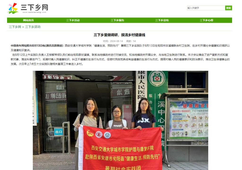 近日,三下乡网对威尼斯官网学子暑期三下乡:三下乡里做调研,摸清乡村健康线进行了报道,具体如下: