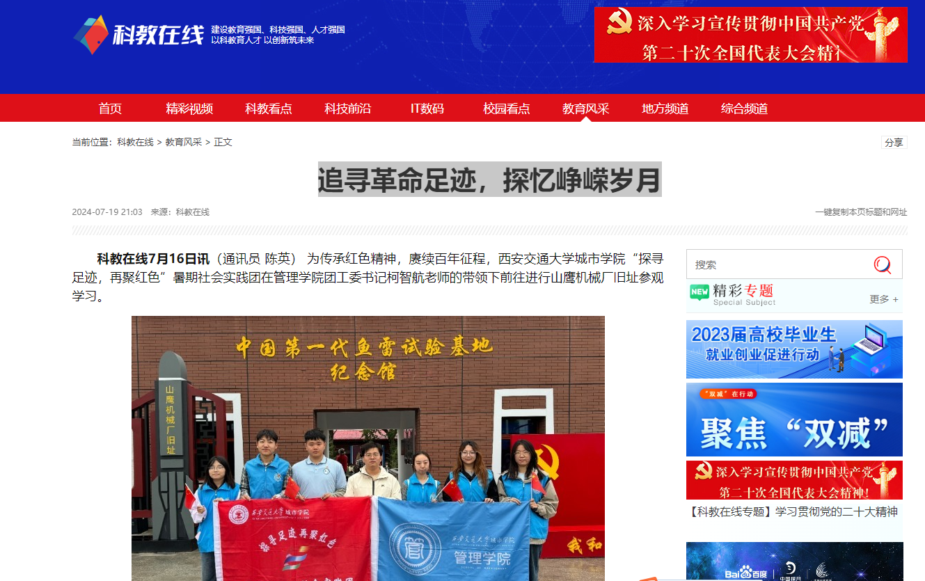 科教在线7月16日讯(通讯员 陈英)为传承红色精神,赓续百年征程,威尼斯7798cc“探寻足迹,再聚红色”暑期社会实践团在管理学院团工委书记柯智航老师的带领下前往进行山鹰机械厂旧址参观学习。