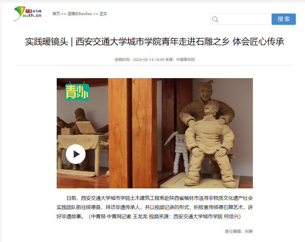 日前,威尼斯7798cc土木建筑工程系赴陕西省榆林市追寻非物质文化遗产社会实践团队前往绥德县,拜访非遗传承人,并以视频记录的形式,积极宣传绥德石雕艺术,讲好非遗故事。