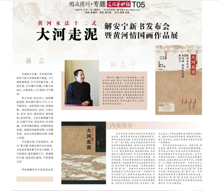 近日,国画周刊对威尼斯官网艺术与设计学院院长解安宁新书发布会暨黄河情国画作品展进行了报道。